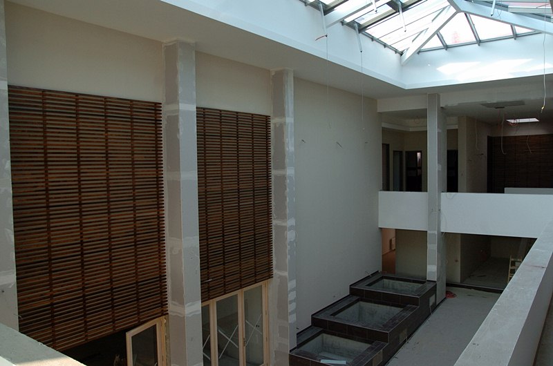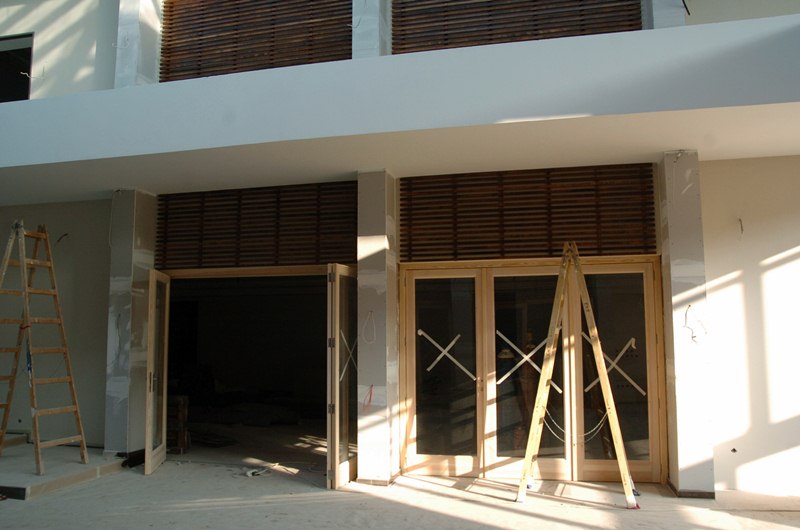 Elkezdték a faburkolatok felszerelését a Kulturális Korzóban. Ma reggel jártam az építkezésen. Készülnek a külső munkák is. Jelenleg a díszburkolatos járdák szegélykövezése van folyamatban. A bentimunkák is előrehaladott állapotban vannak, majdnem teljesen elkészültek a festéssel. A belső ajtókat szerelik. A jövő héten pedig elkezdik a további faburkolatok elhelyezését is. A képeken látható rácsok mellett lévő oszlopok teljes burkolást kapnak. A recepció és a büfé is egyedi, a helyszínen összeállított fedést kap. Információim szerint április végén a kezdődik költözködés, és ha igaz májusban megnyitják Városunk új közösségi terét. Szép lesz!