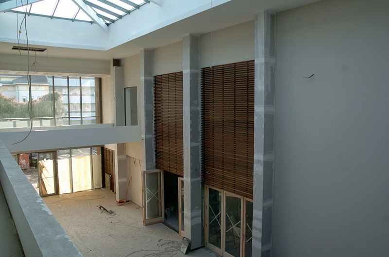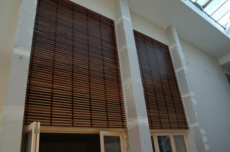 Elkezdték a faburkolatok felszerelését a Kulturális Korzóban. Ma reggel jártam az építkezésen. Készülnek a külső munkák is. Jelenleg a díszburkolatos járdák szegélykövezése van folyamatban. A bentimunkák is előrehaladott állapotban vannak, majdnem teljesen elkészültek a festéssel. A belső ajtókat szerelik. A jövő héten pedig elkezdik a további faburkolatok elhelyezését is. A képeken látható rácsok mellett lévő oszlopok teljes burkolást kapnak. A recepció és a büfé is egyedi, a helyszínen összeállított fedést kap. Információim szerint április végén a kezdődik költözködés, és ha igaz májusban megnyitják Városunk új közösségi terét. Szép lesz!