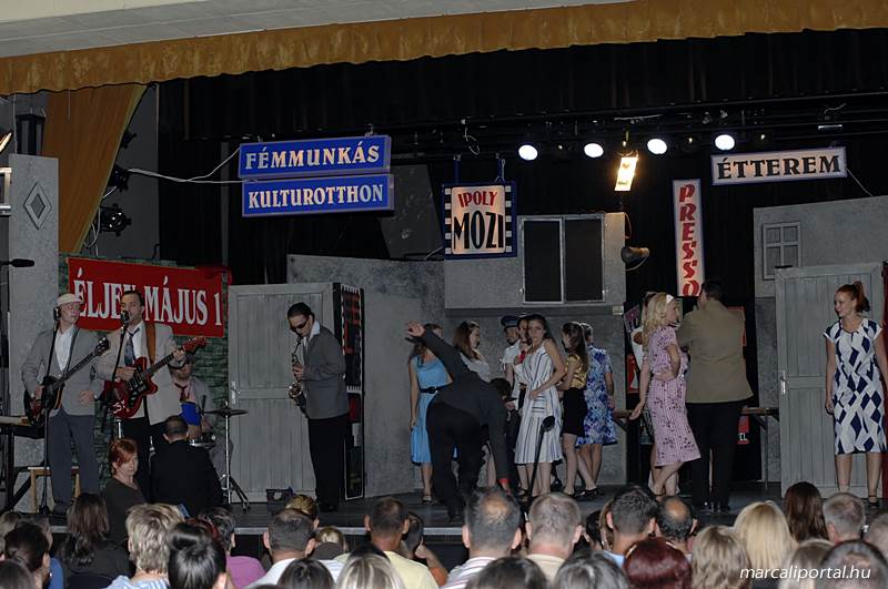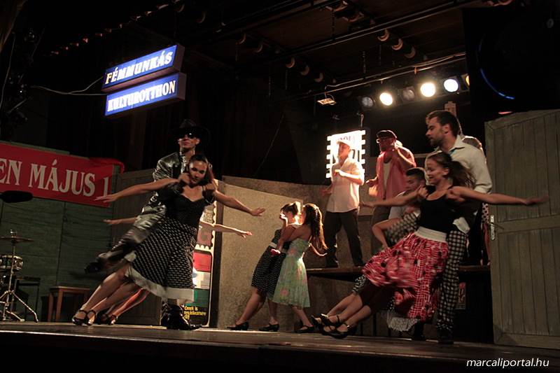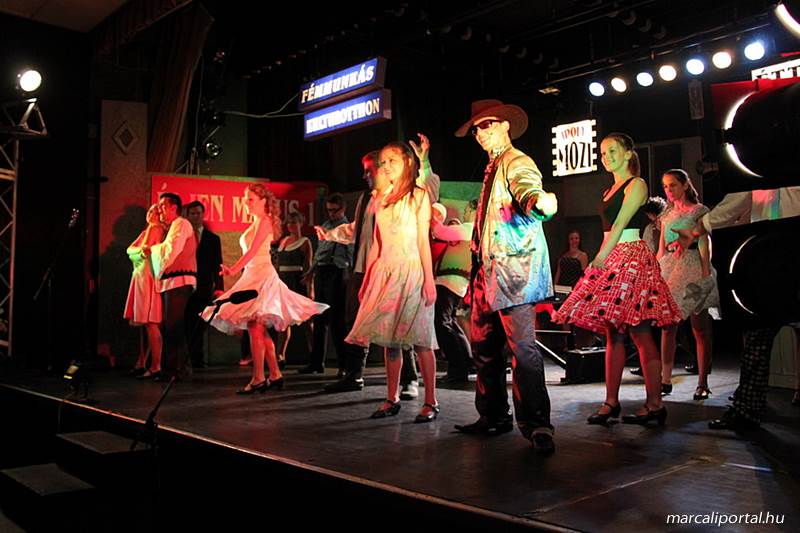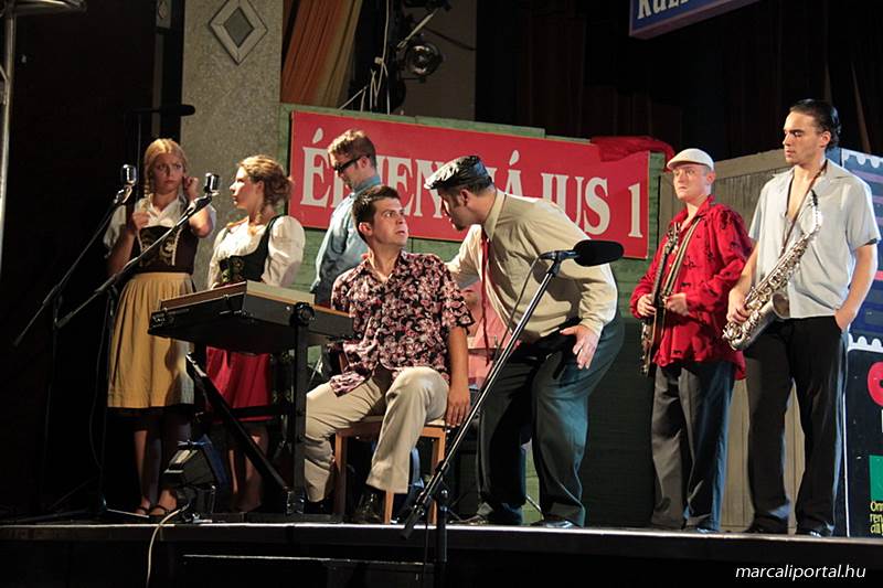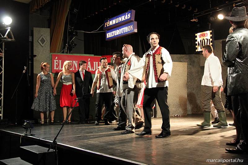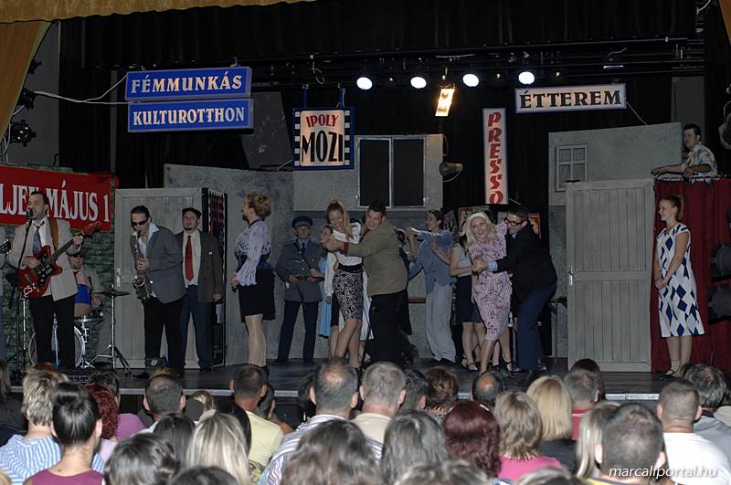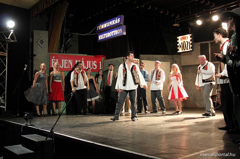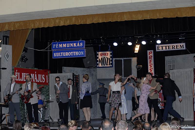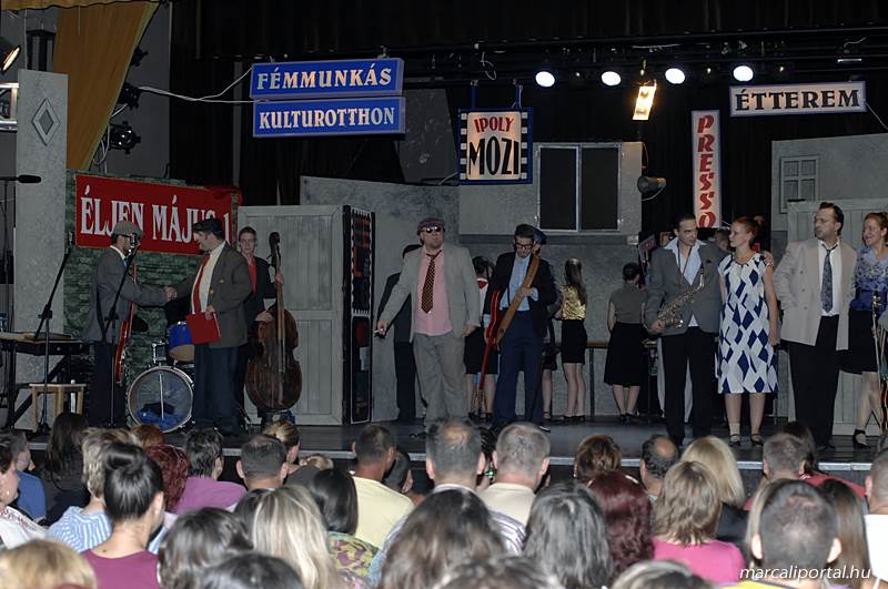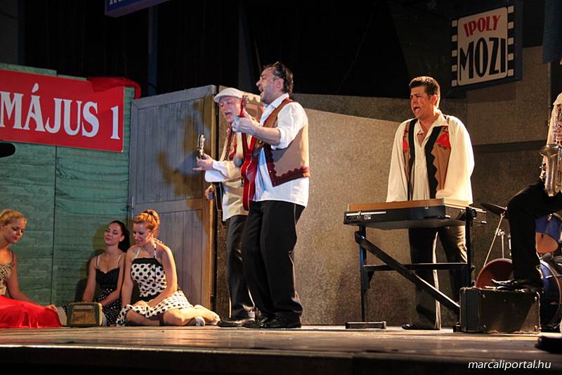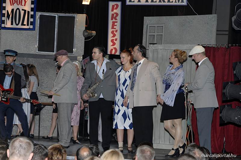 A Szabadtéri Színpadra hirdették meg a Made in Hungaria című musicalt, tegnap estére a Roxínház előadásában. A bizonytalan időjárás miatt a Művelődési Házban kerül bemutatásra, pótszékes teltház mellett a darab. Az előadás elején én, az előadás közben Molnár Balázs készített képeket.
