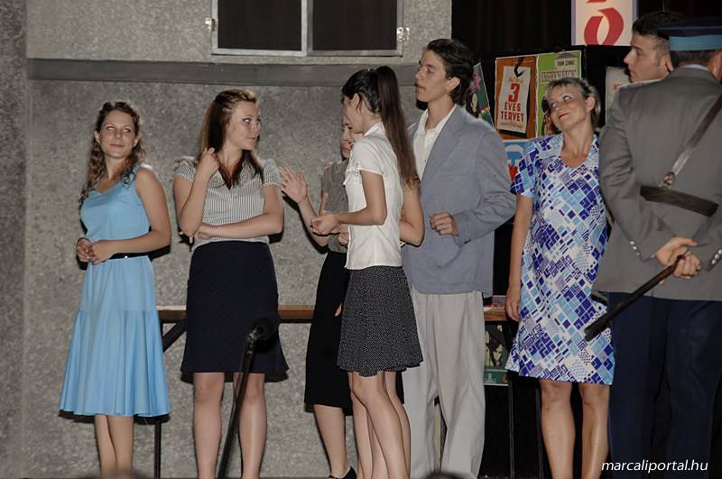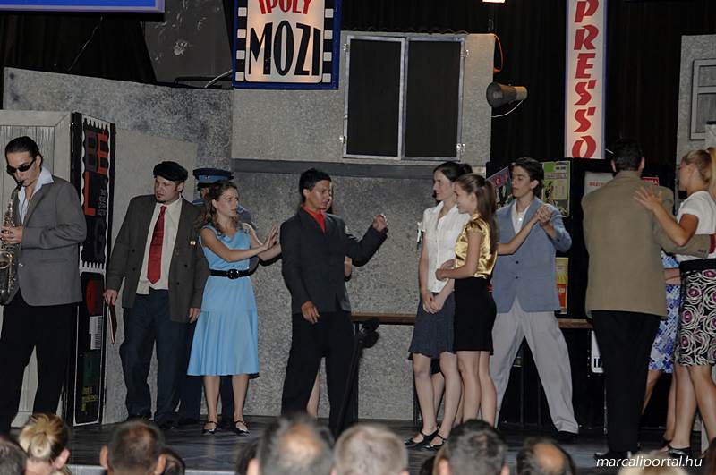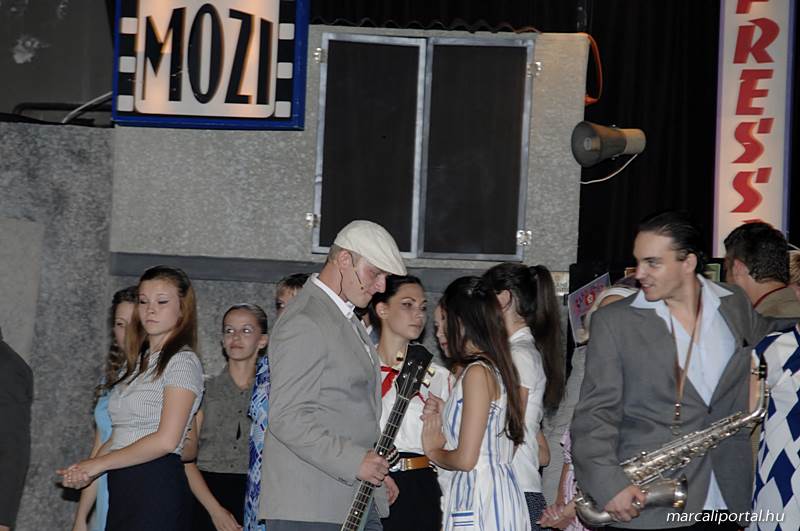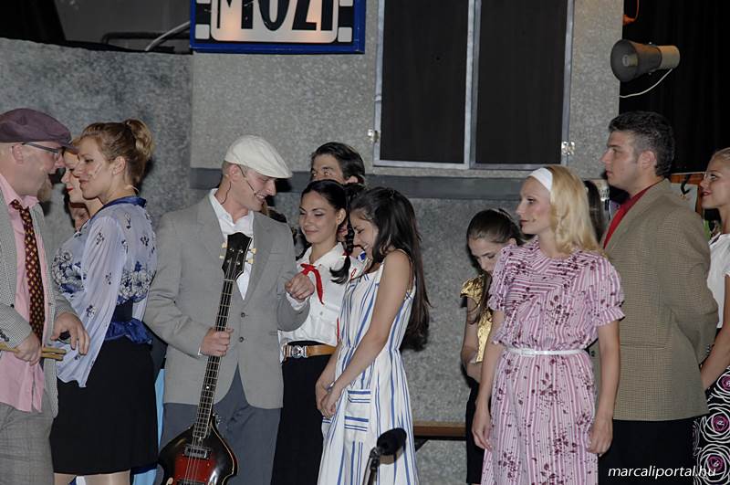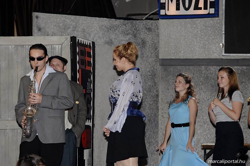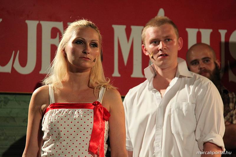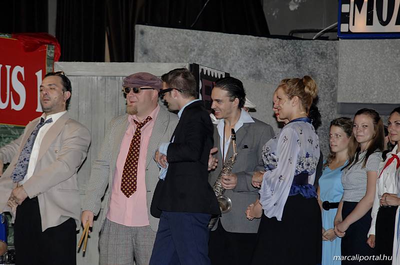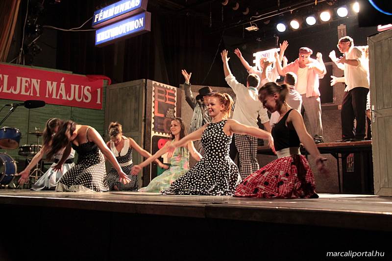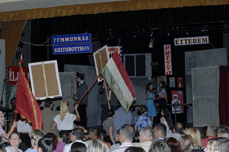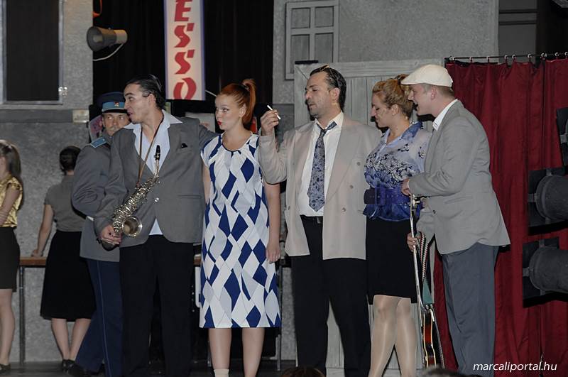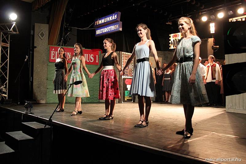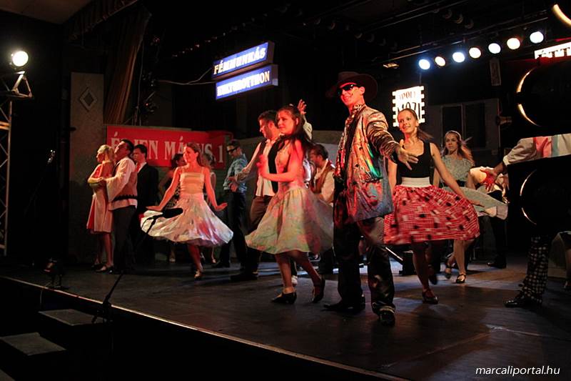A Szabadtéri Színpadra hirdették meg a Made in Hungaria című musicalt, tegnap estére a Roxínház előadásában. A bizonytalan időjárás miatt a Művelődési Házban kerül bemutatásra, pótszékes teltház mellett a darab. Az előadás elején én, az előadás közben Molnár Balázs készített képeket.