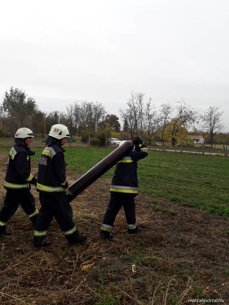A tűzoltók biztonságos távolságba vitték a szivárgó acetilén palackot, majd a rendőrség munkatársai intézkedtek annak kilövéséről. A tűzoltók három vízsugárral megakadályozták a tűz továbbterjedését, majd elfojtották a lángokat. A tűzeset során senki sem sérült meg. Fotó:Siófoki HTP