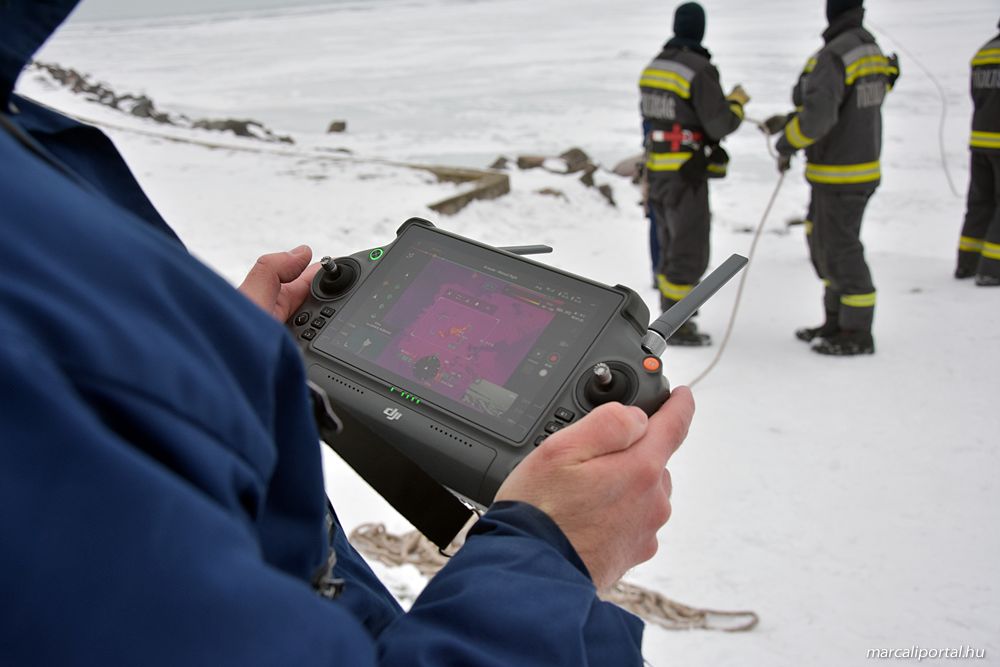 A feltételezett szituációban a Balaton jegén egyedül csúszkáló férfi alatt – a parttól mintegy 230 méterre - beszakadt a jég. Egy arra járó észrevette a bajbajutottat, ám a szerencsétlenül járt mentésére csak felkészült szakemberek tehetnek kísérletet, így azonnal hívta a 112-es segélyhívó számot, és megadta a pontos helyszínt.