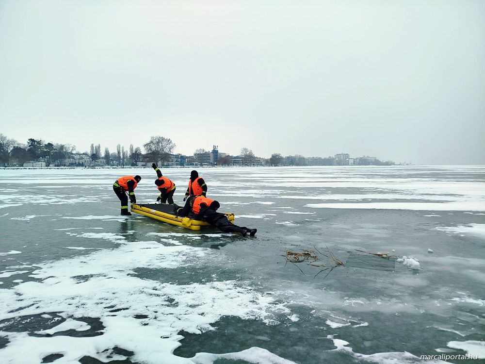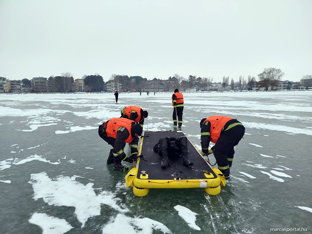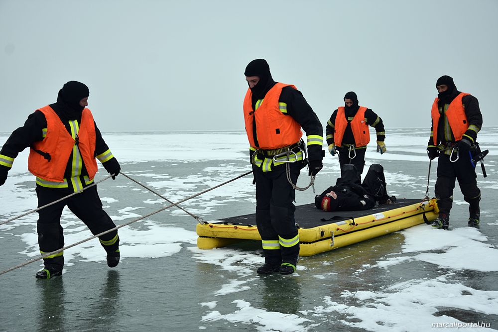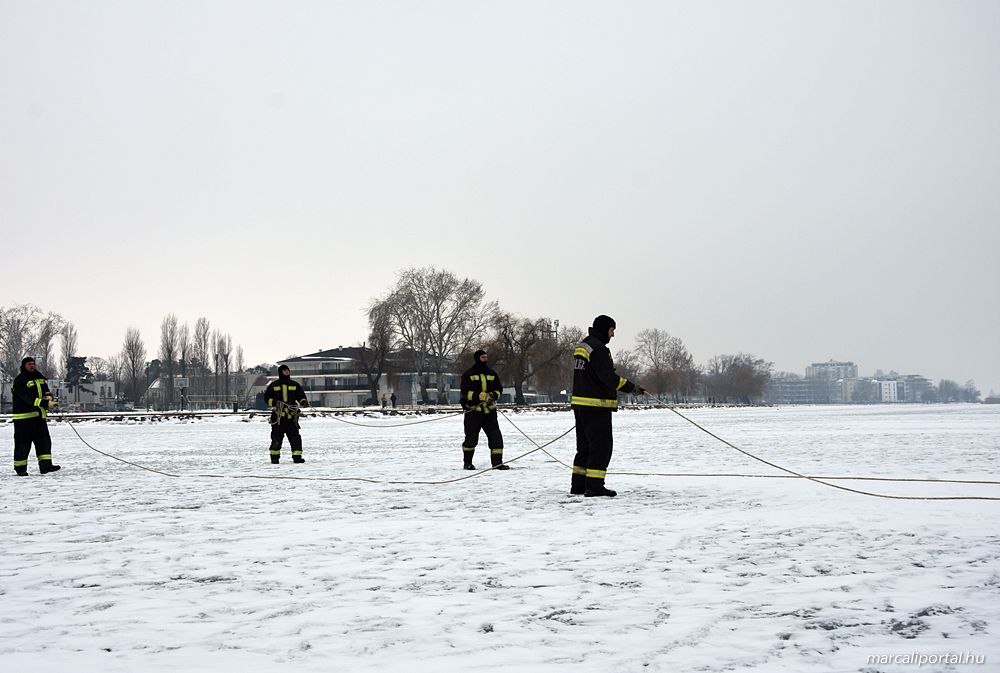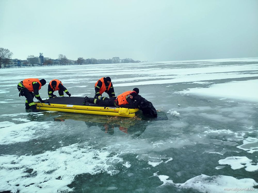 A Balaton felszínét ugyan jég borítja, a vastagsága viszont eltérő, felszíne egyenetlen, ezért veszélyes rámenni. A siófoki hivatásos tűzoltók azt gyakorolták az elmúlt napokban, miként sietnének egy felelőtlen sportoló segítségére, aki alatt beszakadt a jég.