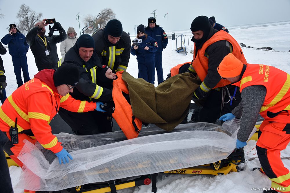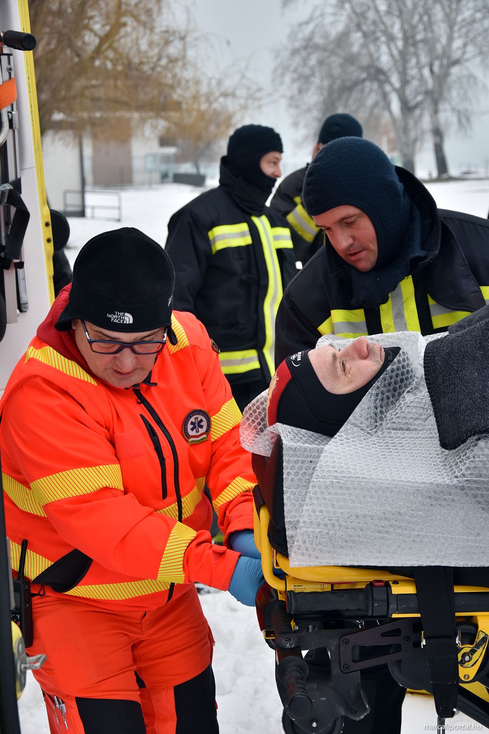 A férfit két tűzoltó megragadta, a stégre fektették, mentőkötelek biztosításával a partra húzták, és átadták a mentőszolgálat munkatársainak, akik gondoskodtak a kihűlés szélén álló férfiról.