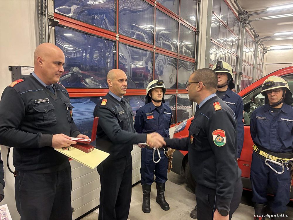 A Somogy Vármegyei Katasztrófavédelmi Igazgatóság személyi állományát erősítik olyan kollégák, akik már évtizedek óta teljesítenek szolgálatot. Dr. Pintér Sándor Magyarország belügyminisztere szolgálati jelet adományozott 20 év szolgálat után Fülöp Péter tűzoltó alezredesnek, a Marcali Katasztrófavédelmi Kirendeltség iparbiztonsági felügyelőjének, Szöllős Péter tűzoltó őrnagynak, a tevékenységirányítási központ főügyeletesének, Németh László tűzoltó főtörzsőrmesternek, a Marcali Hivatásos Tűzoltó-parancsnokság gépjárművezetőjének, Tamasián Tamás és Weinhoffer Gábor tűzoltó főtörzsőrmestereknek, a Marcali Hivatásos Tűzoltó-parancsnokság különlegesszer-kezelőinek; 10 év szolgálat után pedig Varga Martin Sándor tűzoltó őrmesternek (a Siófoki Hivatásos Tűzoltó-parancsnokság beosztott tűzoltójának.