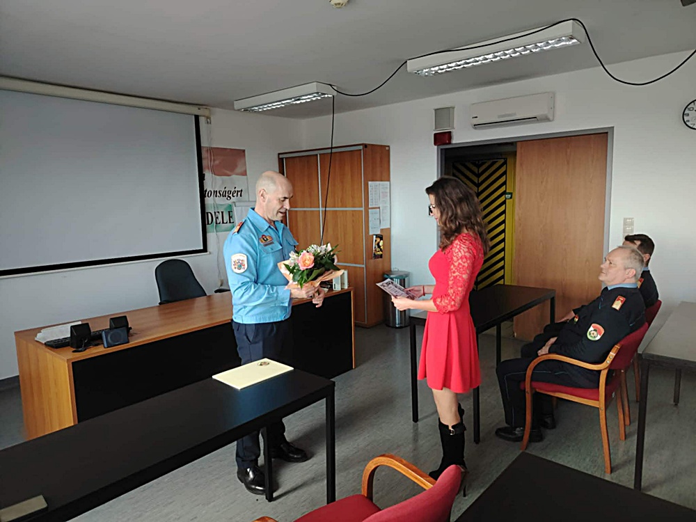 Dr. Góra Zoltán tűzoltó altábornagy a BM Országos Katasztrófavédelmi Főigazgatóság főigazgatójának köszöntőjét tolmácsolták az igazgatóság vezetői 50. születésnapja alkalmából Dávid Ildikónak, a Marcali Katasztrófavédelmi Kirendeltség ügykezelőjének és Vidovics Zsolt László tűzoltó főtörzsőrmesternek, a Siófoki Hivatásos Tűzoltó-parancsnokság különlegesszer-kezelőjének.