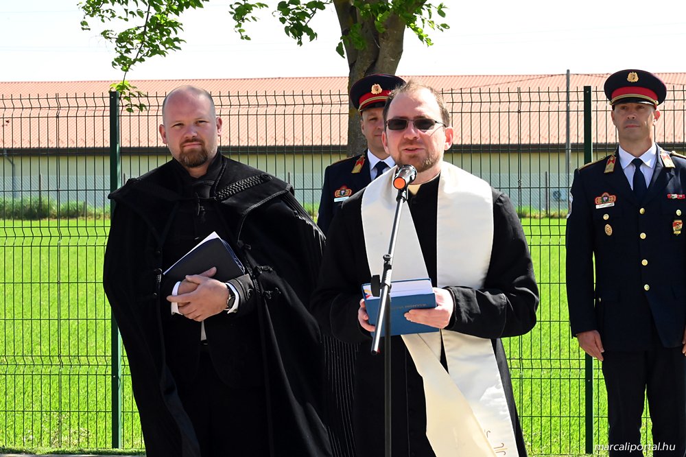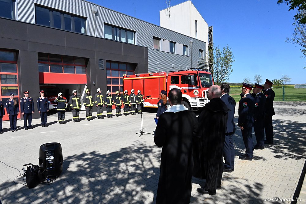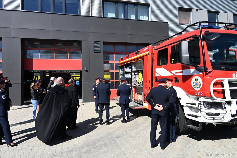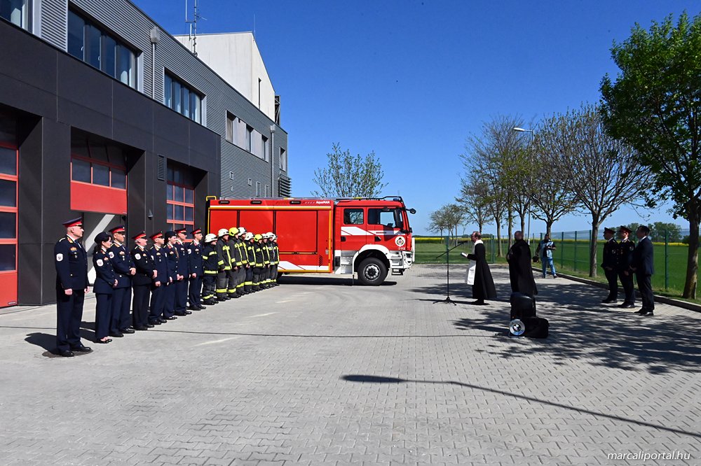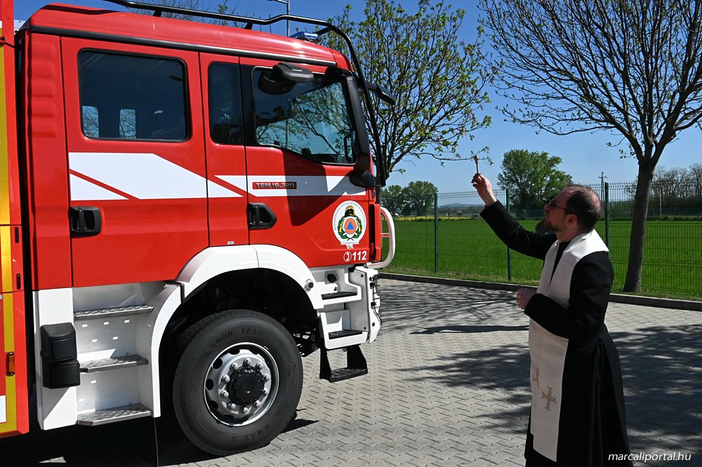 A marcali tűzoltóság eszközparkjának legfiatalabb járművét Tomanek Ferenc Áron, plébános és Makra Zsolt, lelkipásztor áldotta meg. Az ünnepség végén Kuti Gábor tűzoltó őrnagy, tűzoltóparancsnok mutatta be a HEROS–AquaMAN 4000-es gépjárműfecskendőt. Ez a jármű nehezebb domborzati viszonyok között is hatékonyan alkalmazható.