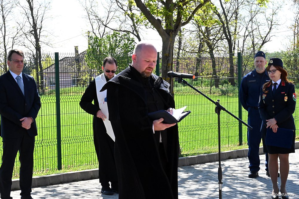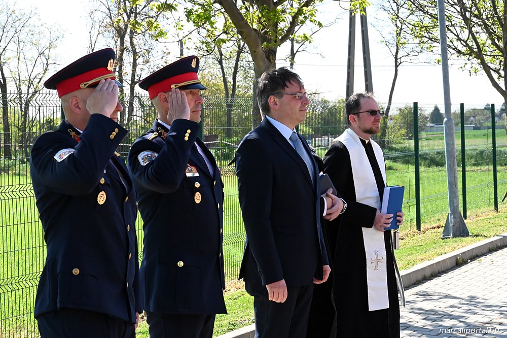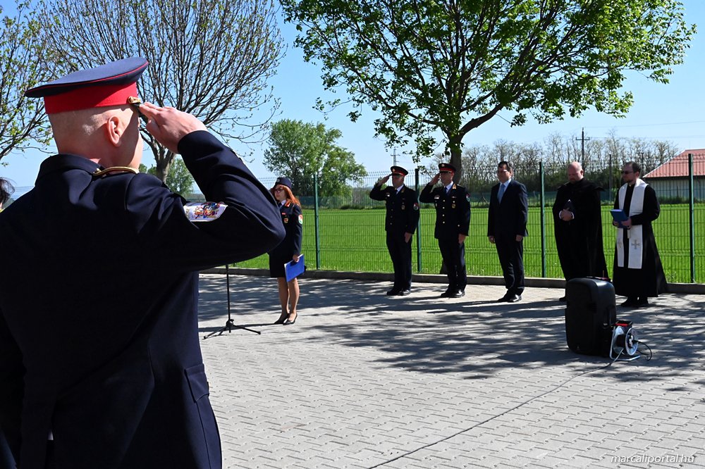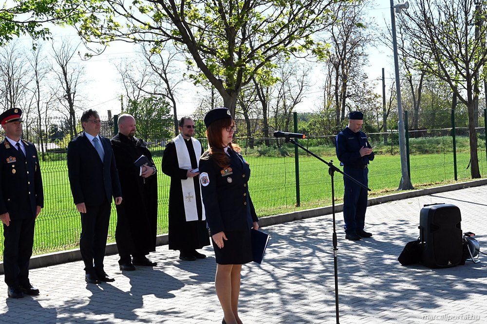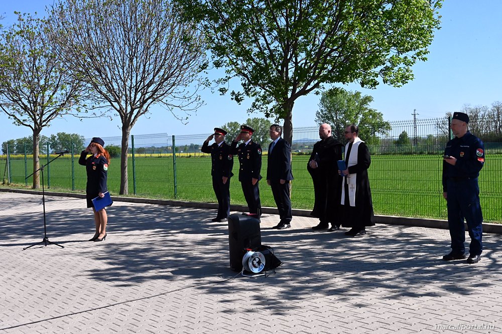 A marcali tűzoltóság eszközparkjának legfiatalabb járművét Tomanek Ferenc Áron, plébános és Makra Zsolt, lelkipásztor áldotta meg. Az ünnepség végén Kuti Gábor tűzoltó őrnagy, tűzoltóparancsnok mutatta be a HEROS–AquaMAN 4000-es gépjárműfecskendőt. Ez a jármű nehezebb domborzati viszonyok között is hatékonyan alkalmazható.