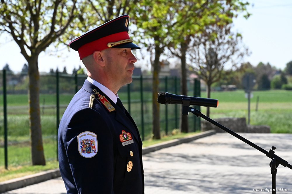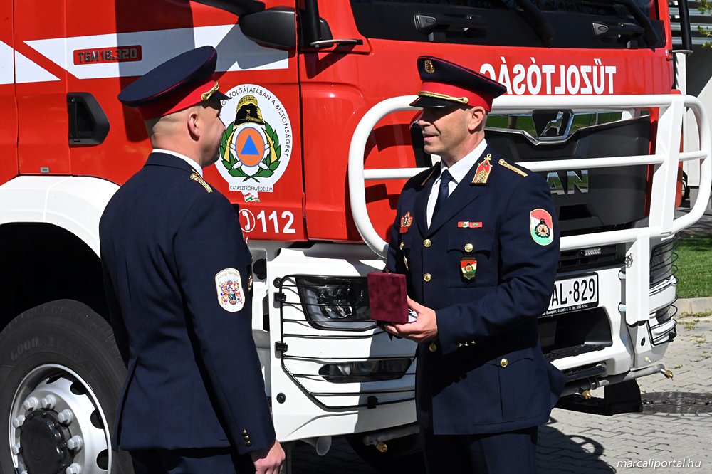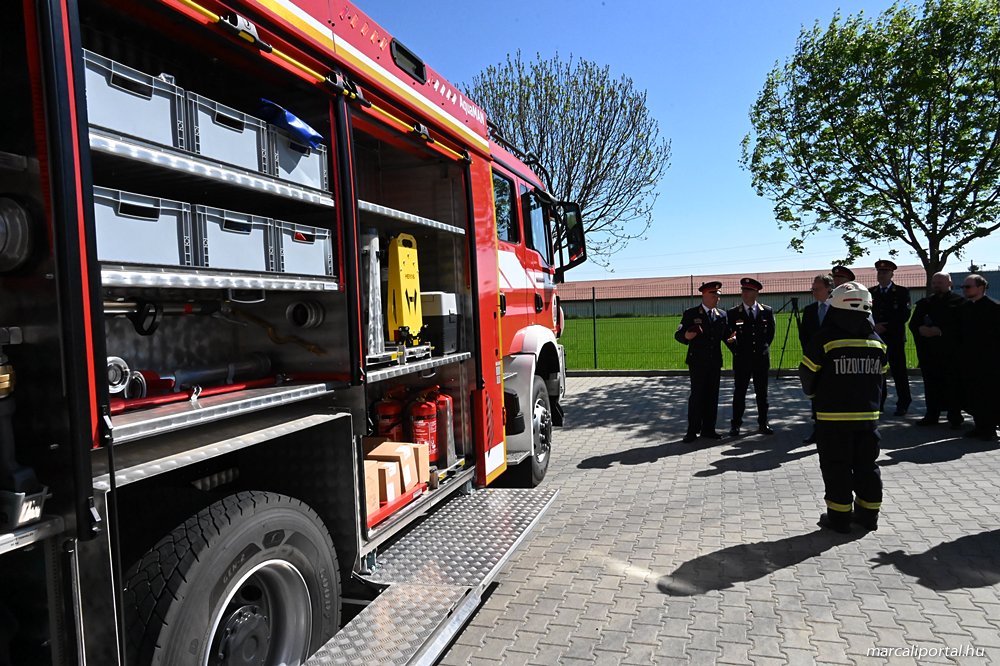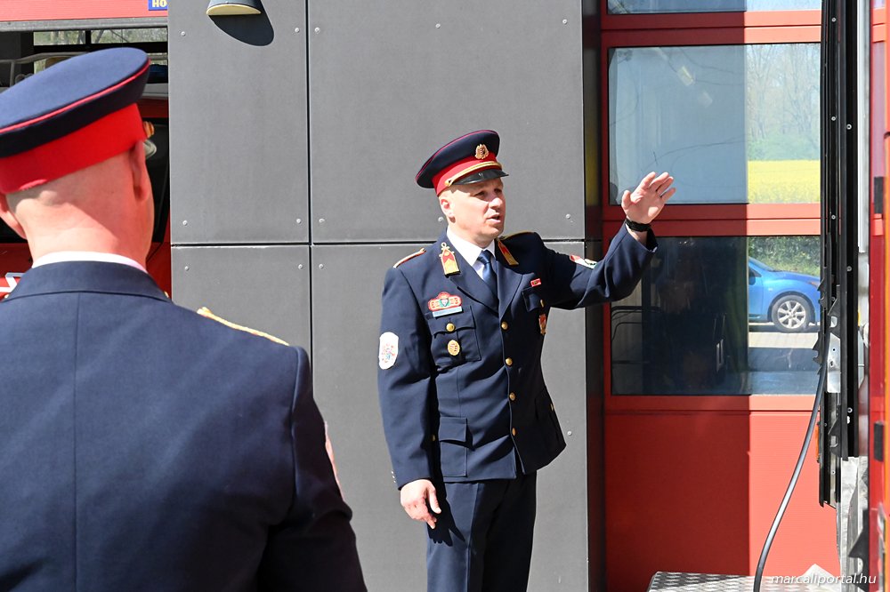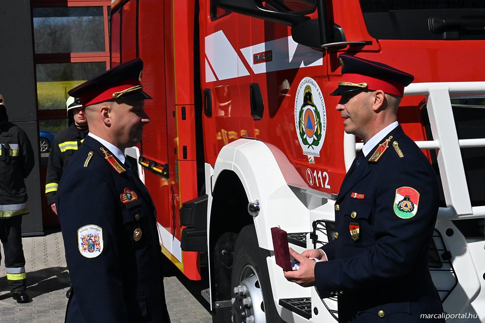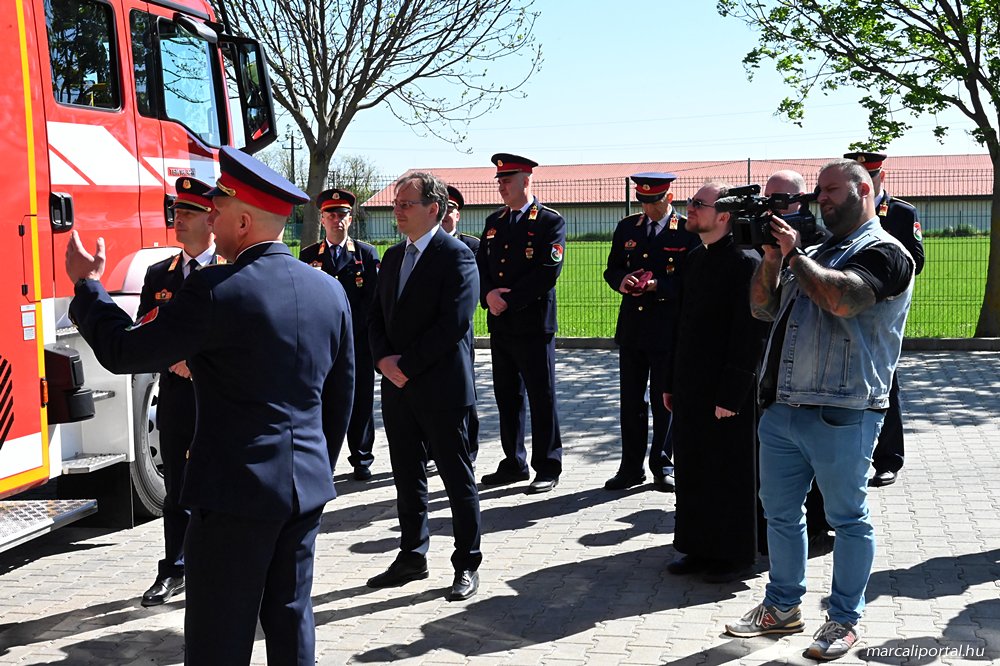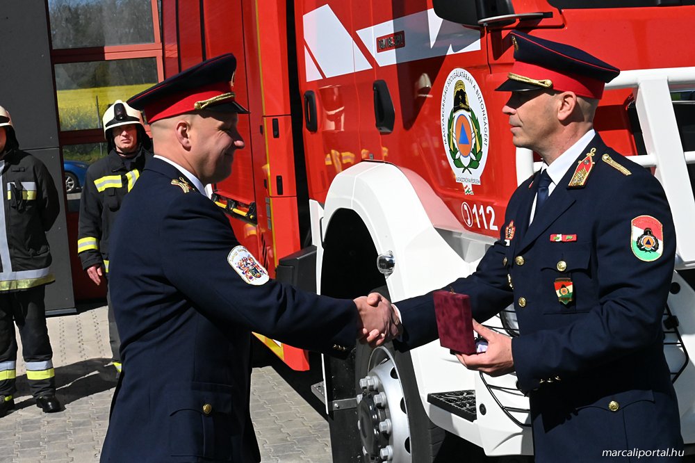 - Ez a korszerű jármű szolgálja Marcali és környékének, mintegy negyvenegy település biztonságát, de szolgálja a ti biztonságotokat is – mondta a tűzoltóknak Krám István tűzoltó ezredes az ünnepélyes átadón. A vármegyei katasztrófavédelmi igazgató ezt követően átadta Kuti Gábor tűzoltó őrnagynak, marcali tűzoltóparancsnoknak a jármű indítókulcsát
