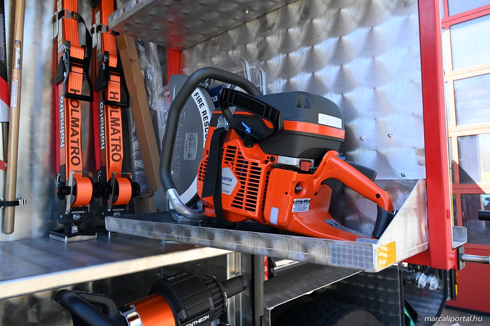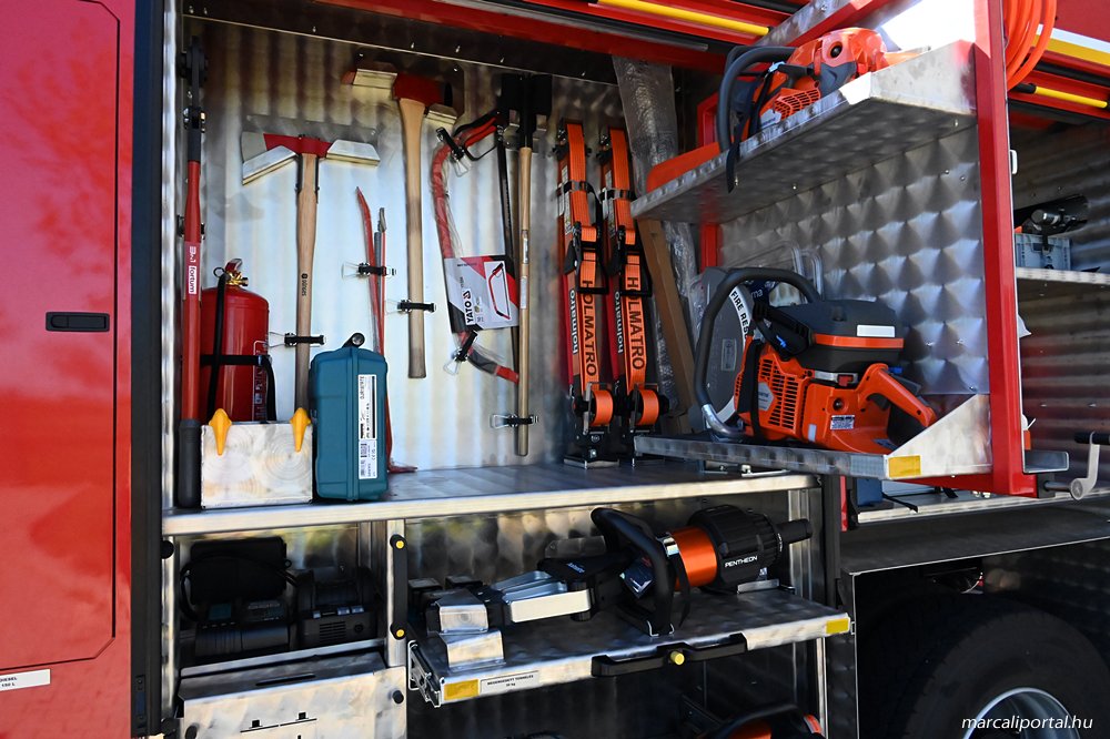 A gépjárműfecskendőt felszerelték a szabadtéri tüzek gyors körülhatárolását segítő avaroltóval, így akár a kigyulladt tarlón, réten haladva menet közben is olthatja az égő vegetációt. Emellett haladása során szivattyúüzemre is állítható, amely a vízsugárral történő gyors beavatkozást segíti, mindemellett speciális erdőtűzoltó szakfelszereléseket is tartalmaz – hangsúlyozta a tűzoltóparancsnok. Hozzátette: a műszaki mentési feladatok támogatására a legújabb fejlesztésű akkumulátoros feszítővágó eszközök is rendelkezésre állnak.