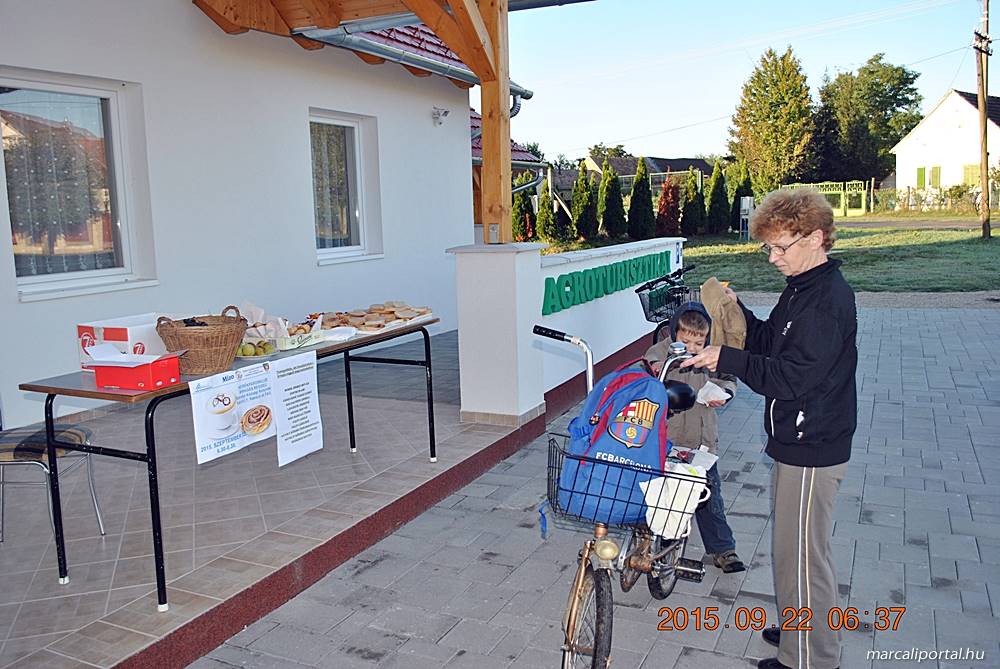 Lehetőség volt a kerékpárok állapotfelmérésére, a gumik felfújására is. Sokan éltek is a lehetőséggel. 29-en tiszteltek meg Bennünket, mindenkinek egészségére a reggelit! A felajánlásokat, a hozzájárulásokat nagyon szépen köszönjük! A maradék reggelit elvittük az óvodásoknak, a gyerkőcök jó szívvel, örömmel fogadták.