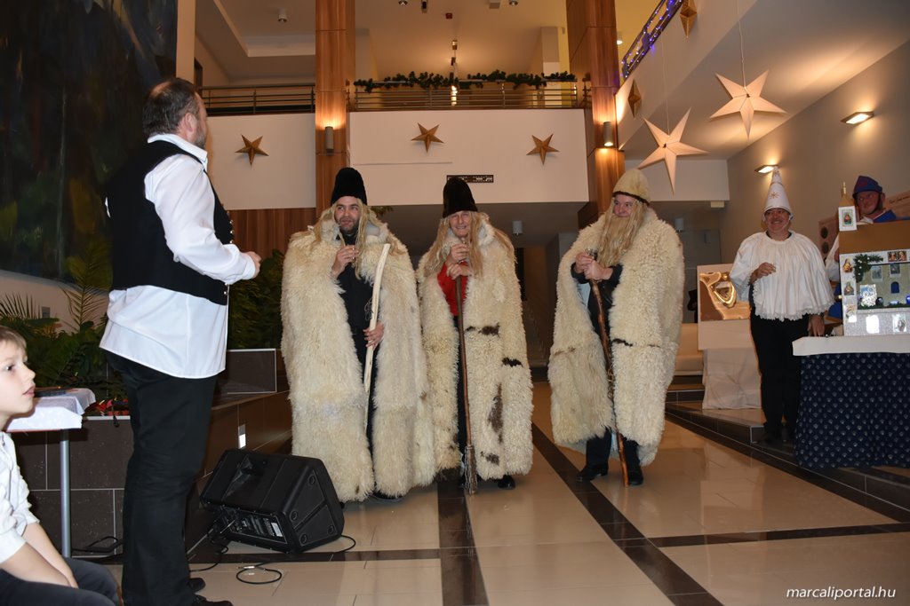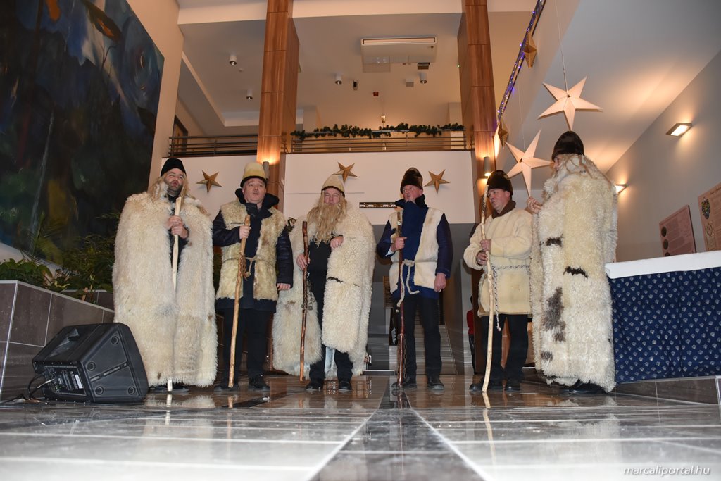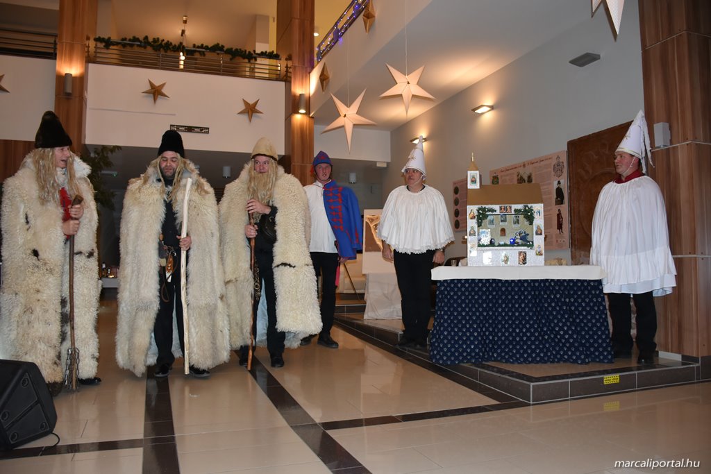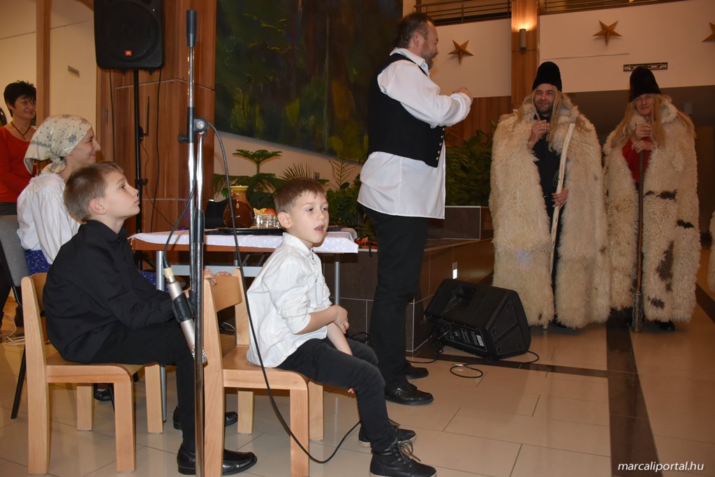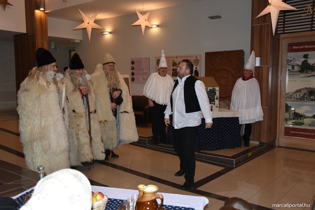 Az estet a Calypso Kórus karácsonyi népszokásokhoz kapcsolódó műsora nyitotta meg. Azt követően a Marcali Múzeum néprajzkutató-igazgatója, Vidák Tünde beszélt a Marcali járásban máig fellelhető bábtáncoltató betlehemes hagyományokról. Az intézményvezető arra is kitért, hogyan elevenednek meg városunk betlehemes hagyományai a múzeum és a kórus összefogásának köszönhetően. Kiemelte, hogy a jelenlévők egyszeri és különleges bemutatót láthatnak, hiszen a kórus tagjai a néprajzi kutatások nyomán fellelt huszadik század eleji Marcali környéki bábtáncoltató betlehemezést és egy bizei regölést is előadnak. A bemutatókat Vidák Tünde igazgató néprajzi kutatásai és útmutatása alapján Stamler Edit, a Calypso Kórus karnagya tanította be. Szereplői pedig a vegyeskar kiváló énekesei voltak a következő szereposztásban: katona: Maronics István, angyalok: Kelemen Gábor és Máthé Zsolt Mihály, pásztorok: Gájer Szilárd, Gájer Tamás és Boros Gábor. A betlehemezőket házigazdaként dr. Bárczi Tamás és Gájerné Bicskei Éva fogadta. Jelenetbeli gyermekeiket Dávid Miklós és Dávid Vilmos alakította.