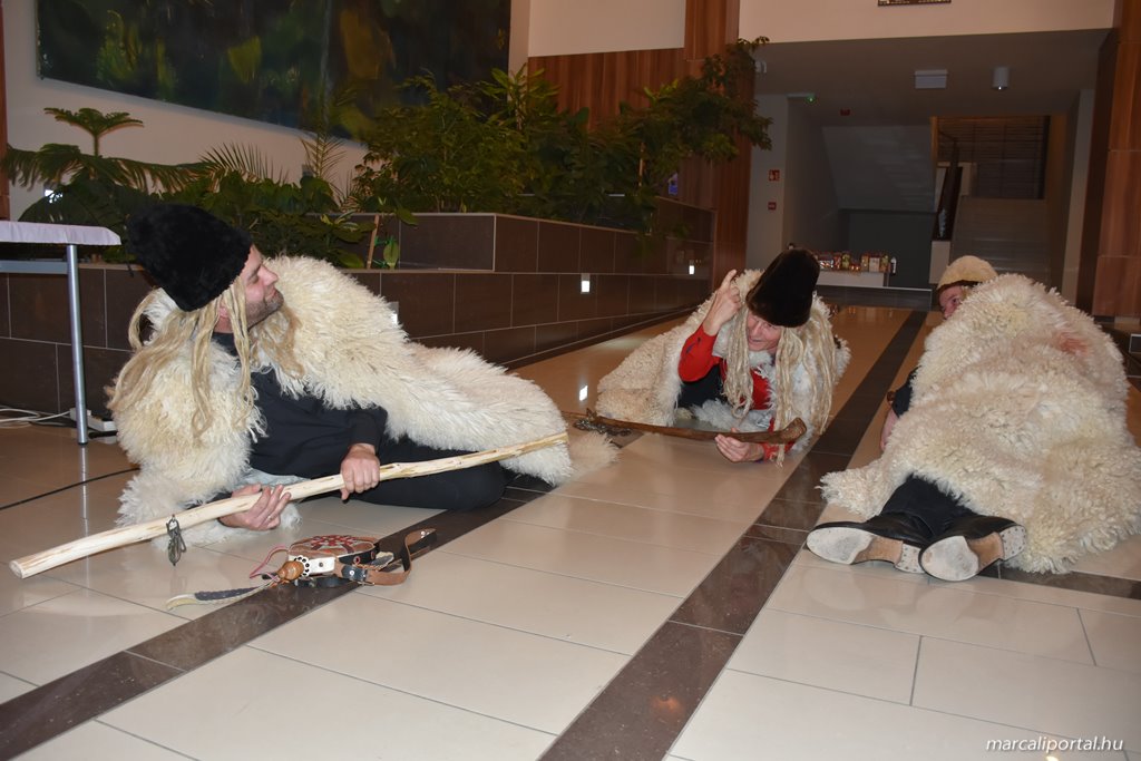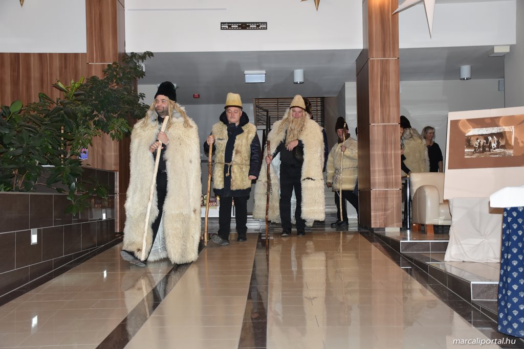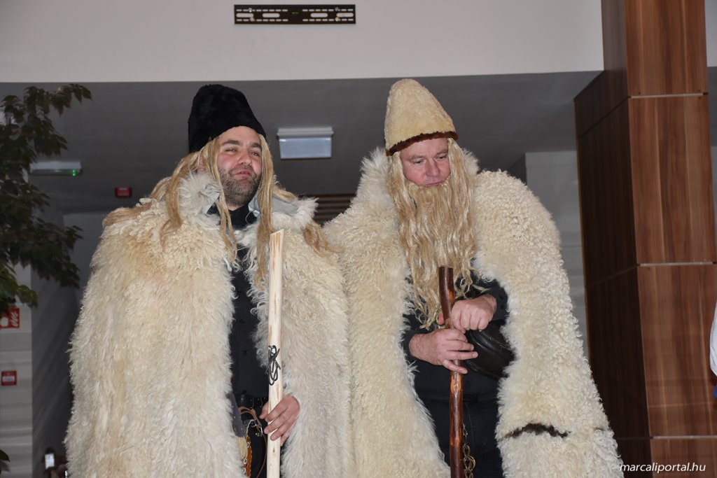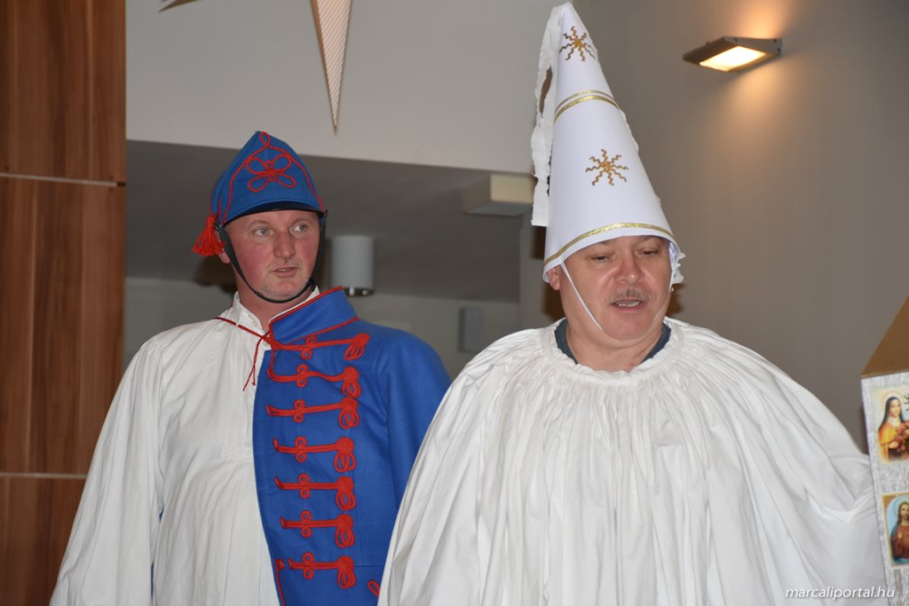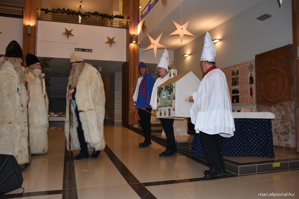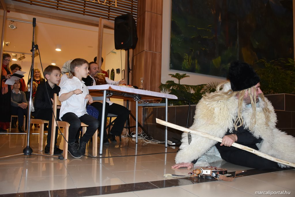 Az estet a Calypso Kórus karácsonyi népszokásokhoz kapcsolódó műsora nyitotta meg. Azt követően a Marcali Múzeum néprajzkutató-igazgatója, Vidák Tünde beszélt a Marcali járásban máig fellelhető bábtáncoltató betlehemes hagyományokról. Az intézményvezető arra is kitért, hogyan elevenednek meg városunk betlehemes hagyományai a múzeum és a kórus összefogásának köszönhetően. Kiemelte, hogy a jelenlévők egyszeri és különleges bemutatót láthatnak, hiszen a kórus tagjai a néprajzi kutatások nyomán fellelt huszadik század eleji Marcali környéki bábtáncoltató betlehemezést és egy bizei regölést is előadnak. A bemutatókat Vidák Tünde igazgató néprajzi kutatásai és útmutatása alapján Stamler Edit, a Calypso Kórus karnagya tanította be. Szereplői pedig a vegyeskar kiváló énekesei voltak a következő szereposztásban: katona: Maronics István, angyalok: Kelemen Gábor és Máthé Zsolt Mihály, pásztorok: Gájer Szilárd, Gájer Tamás és Boros Gábor. A betlehemezőket házigazdaként dr. Bárczi Tamás és Gájerné Bicskei Éva fogadta. Jelenetbeli gyermekeiket Dávid Miklós és Dávid Vilmos alakította.