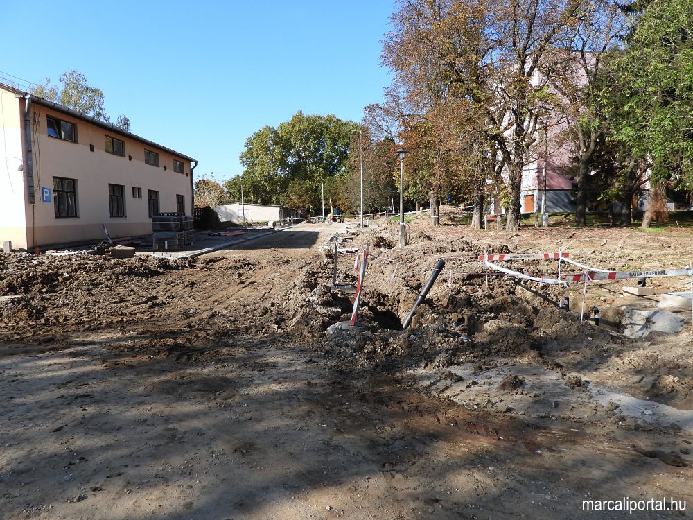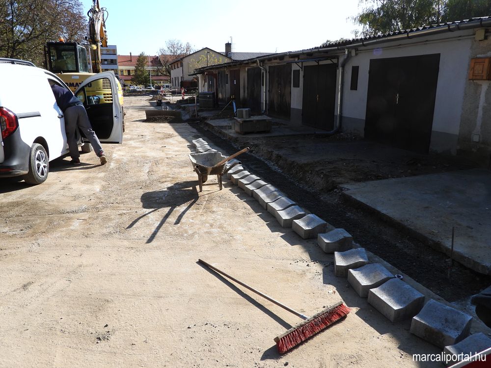 A Rákóczi tömbbelső beruházásnál a kivitelező, a közművek cseréje mellett továbbra is a útszegélyeket alakítja ki, valamint elkezdte a fényforrások cseréjét.