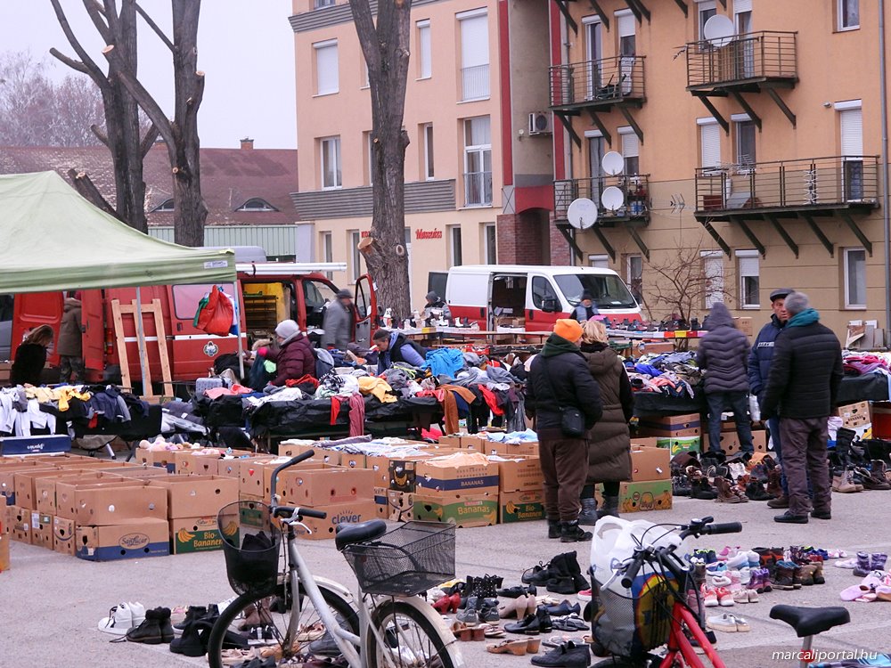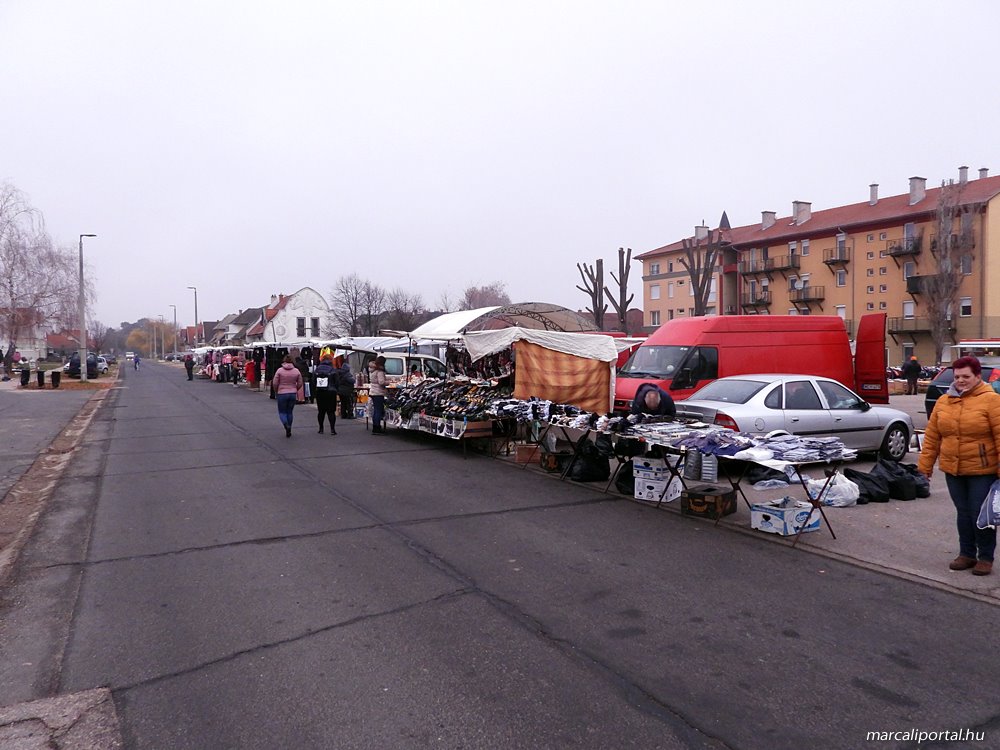 Nagy piac lesz ma Marcaliban. Sok árus már kipakolt és már vevő is van, karácsonyi kelléket is találnak! Lángos és pecsenye is kapható.