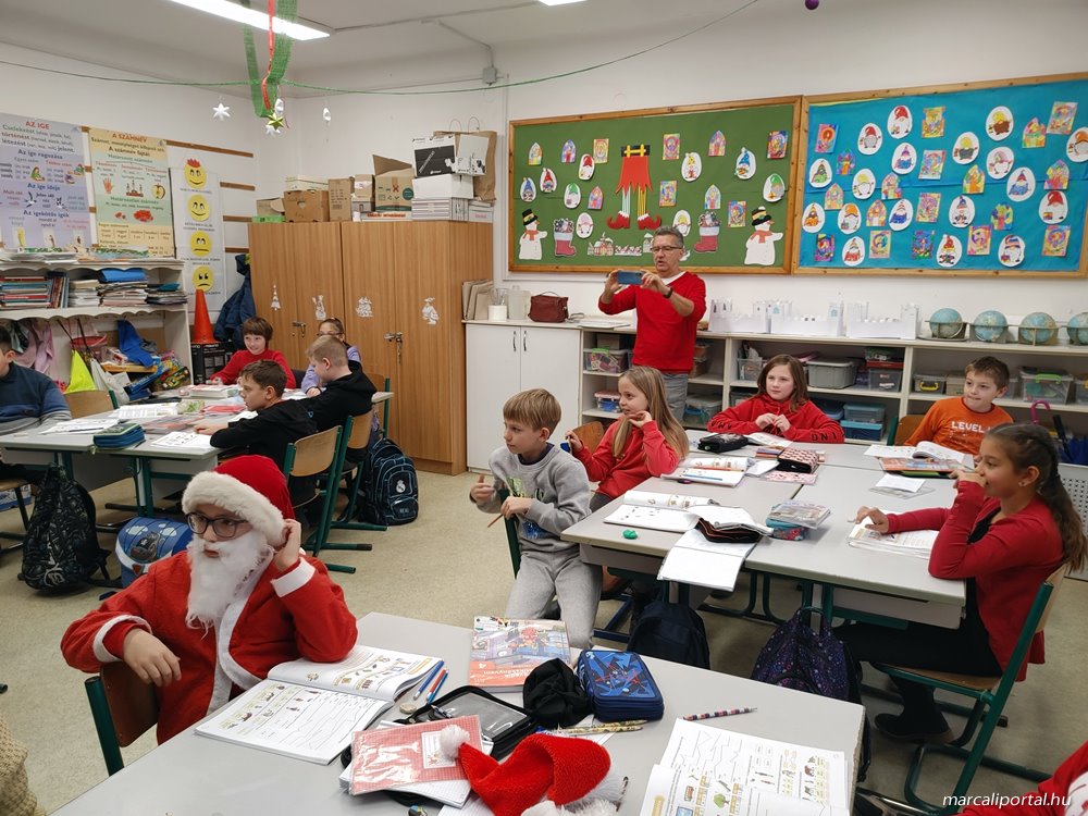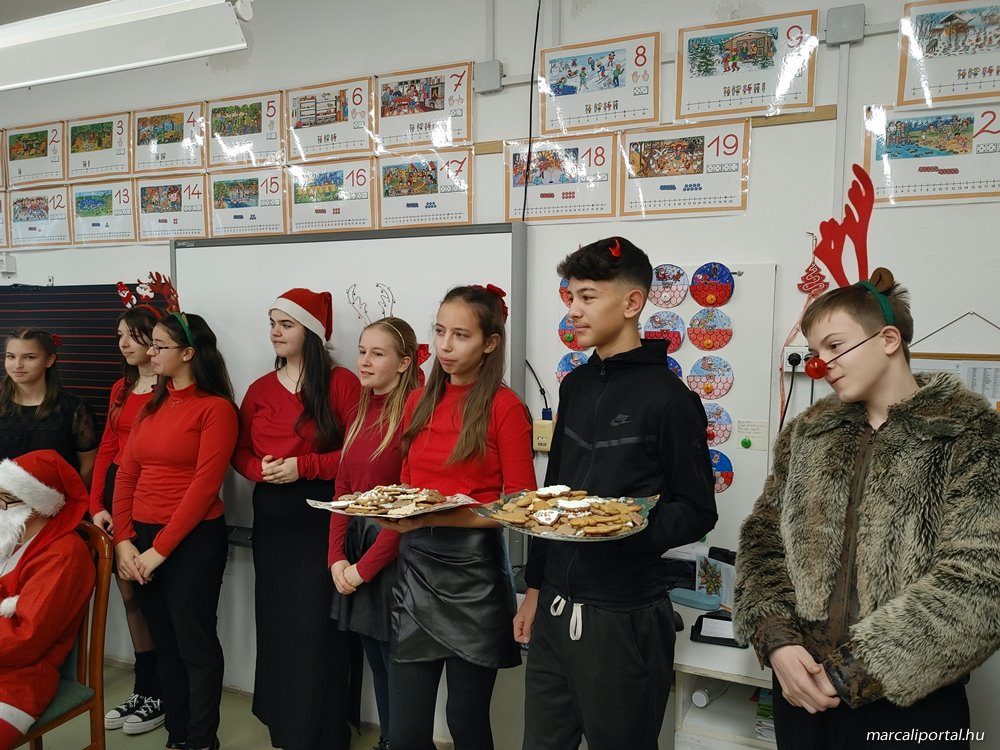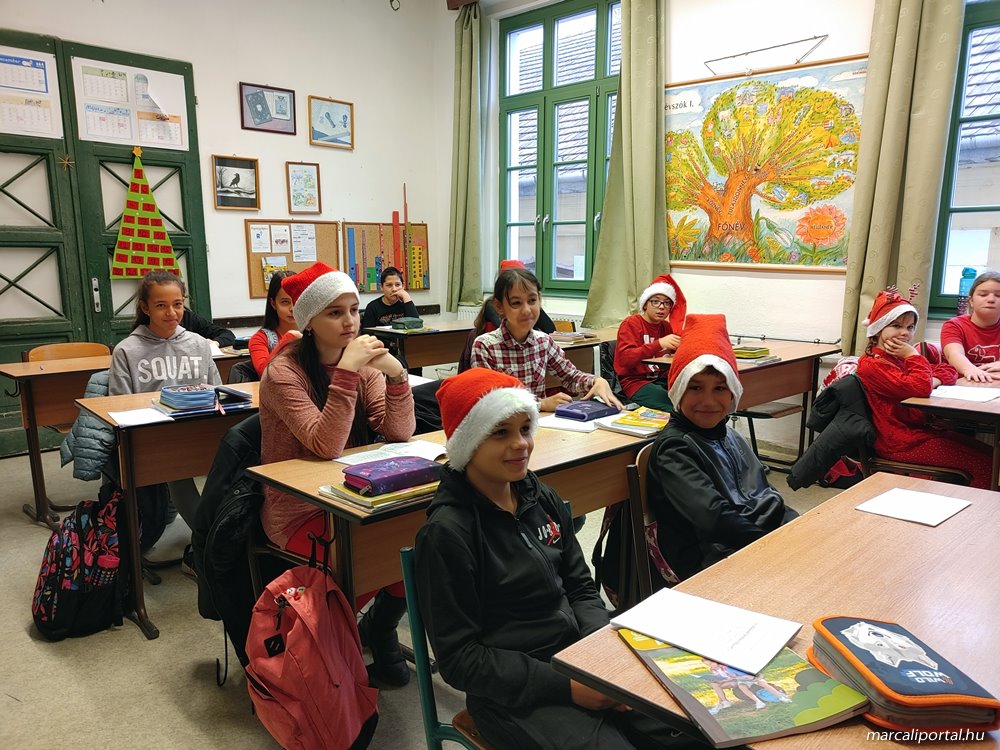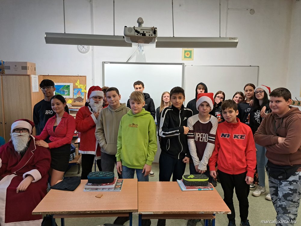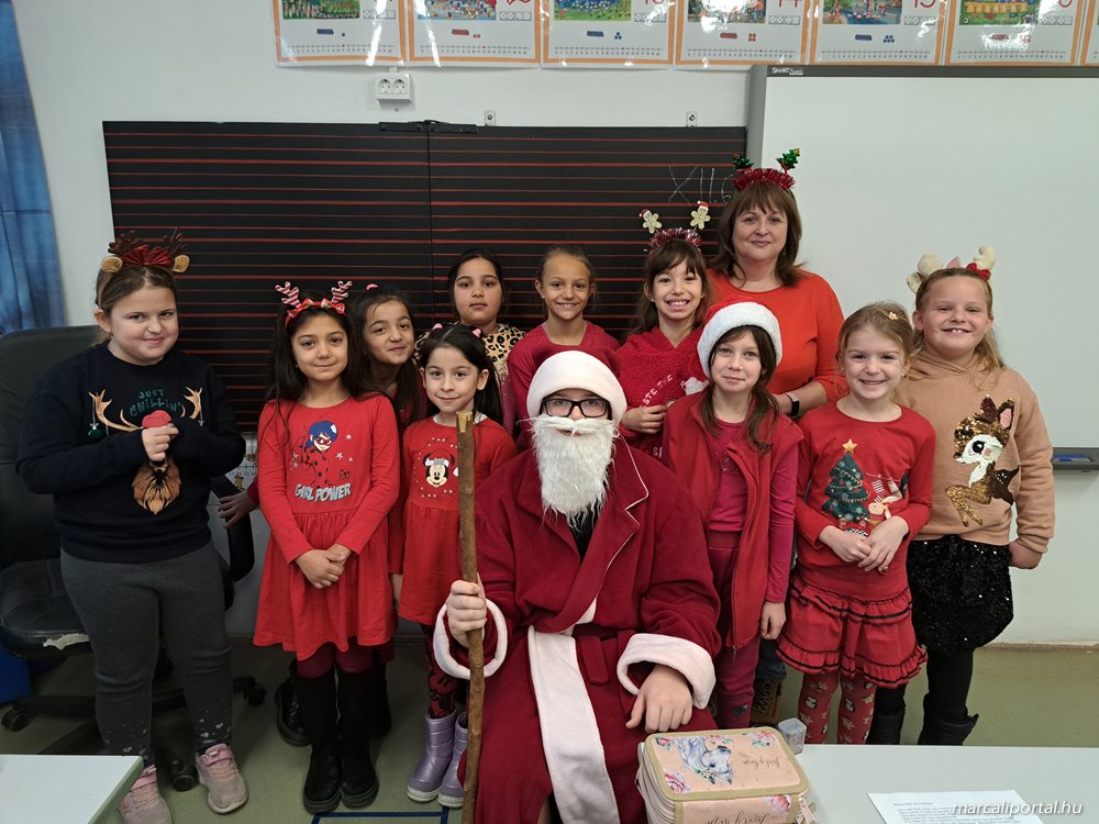 A legkisebbeket ajándékozta meg először, végzős lányok zenés-táncos műsorral lepték meg őket, majd mézeskalács és egyéb finomságok tették teljessé a látogatást. Felsős diákjaink is izgatottan várták, hozzájuk mikor érkezik a Télapó és segítői. A három nyolcadikos csapat a felnőtteknek is előadással kedveskedett: az igazgatói irodában, a tanári szobában is igazi ünnepi hangulatot varázsoltak!