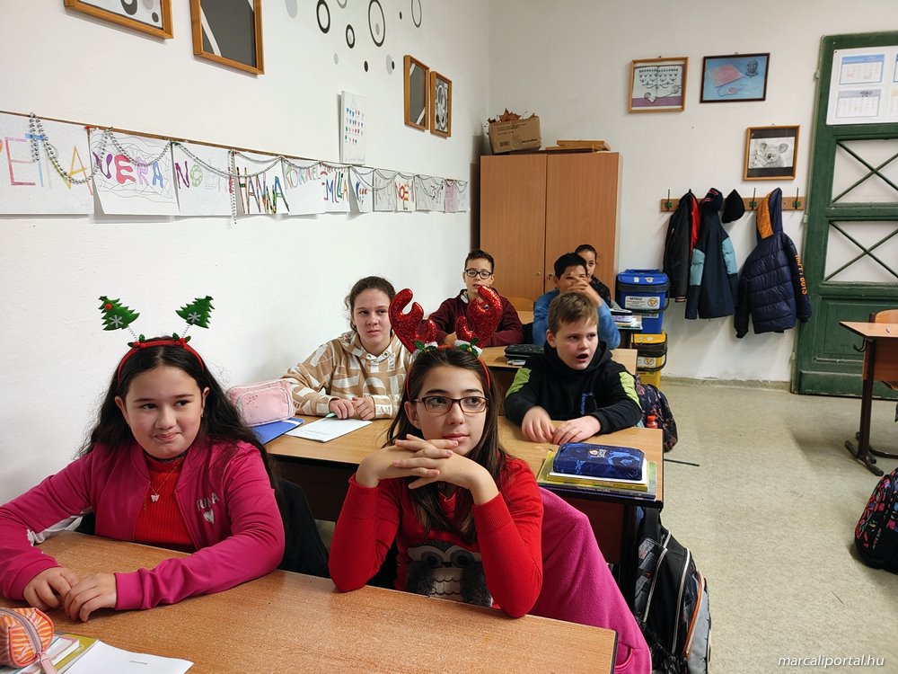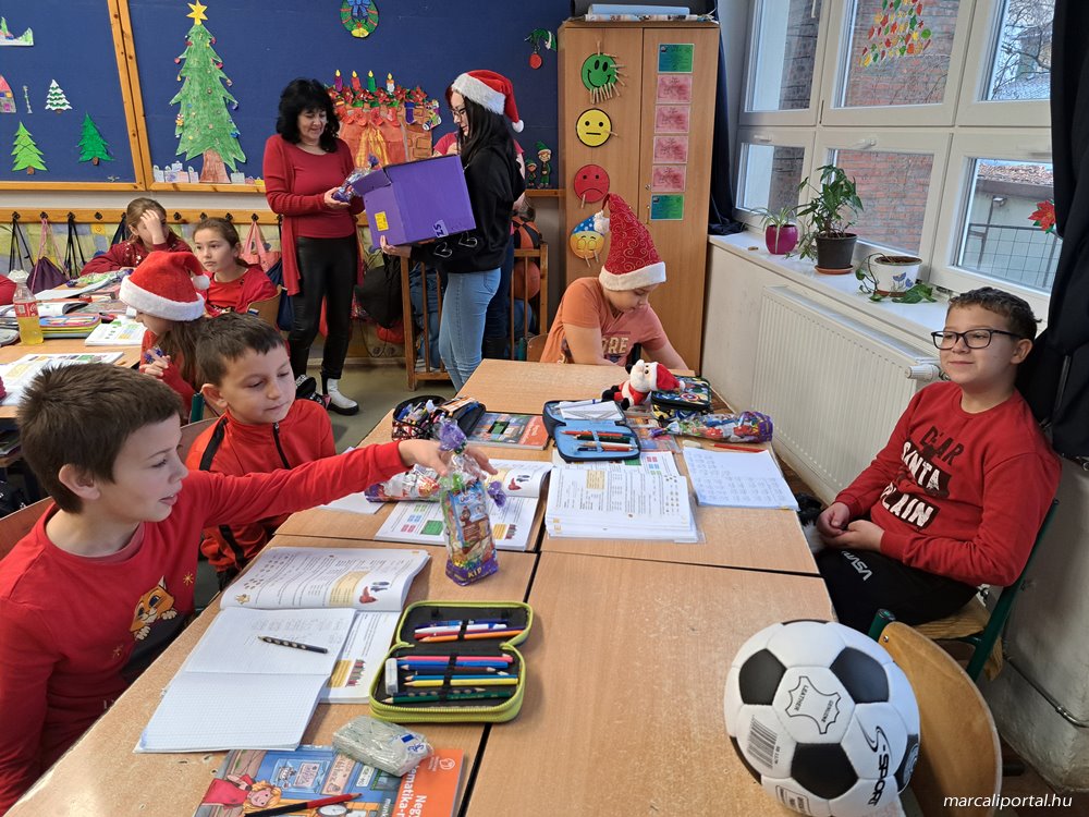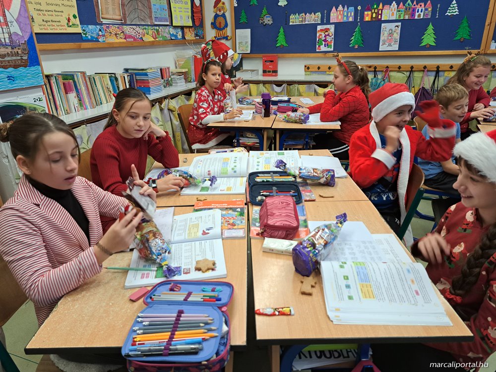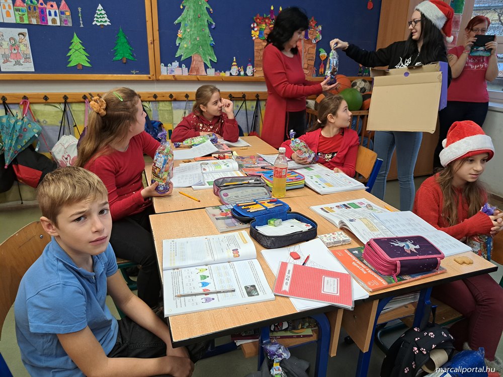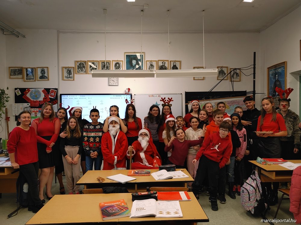 A legkisebbeket ajándékozta meg először, végzős lányok zenés-táncos műsorral lepték meg őket, majd mézeskalács és egyéb finomságok tették teljessé a látogatást. Felsős diákjaink is izgatottan várták, hozzájuk mikor érkezik a Télapó és segítői. A három nyolcadikos csapat a felnőtteknek is előadással kedveskedett: az igazgatói irodában, a tanári szobában is igazi ünnepi hangulatot varázsoltak!