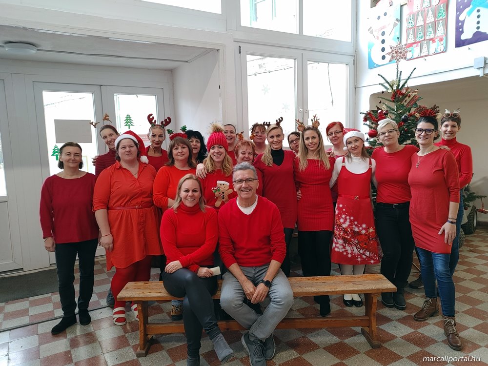 Az immár hagyománnyá vált piros ruhás nap nem múlhatott el közös fotók készítése nélkül, amelyet a pedagógusok sem hagyhattak ki.