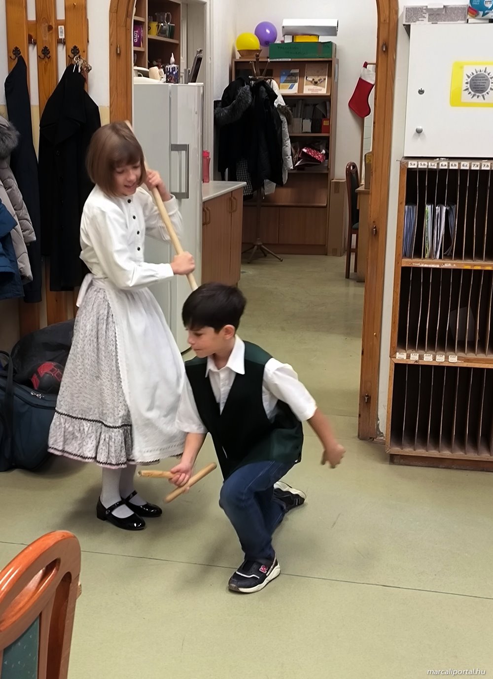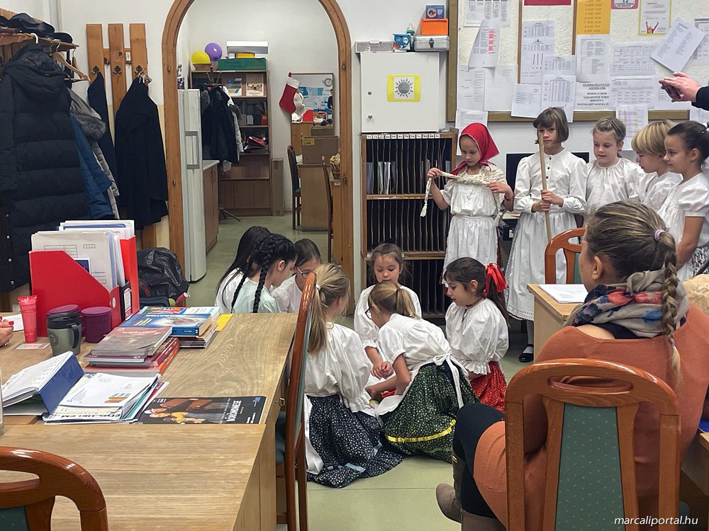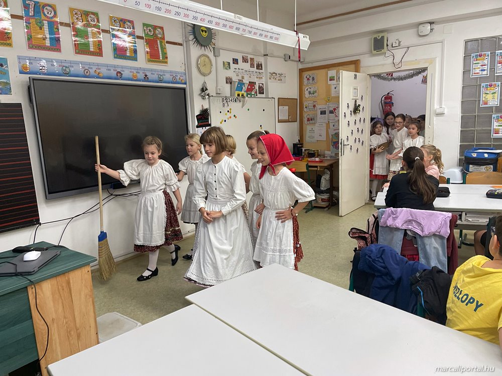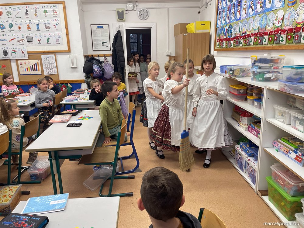 A gyerekek teremről-teremre jártak, hogy szerencsekívánó, termésvarázsló jókívánságaikkal, egészséget-, gazdagságot hozó rigmusaikkal megörvendeztessék társaikat, tanáraikat és az iskola dolgozóit.