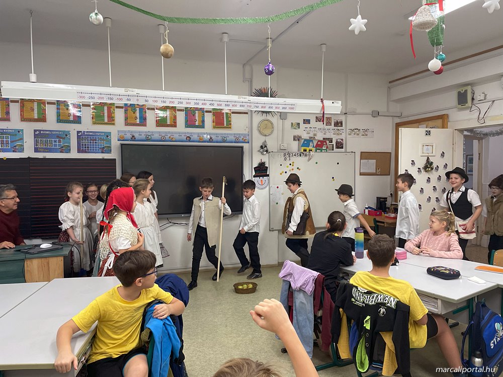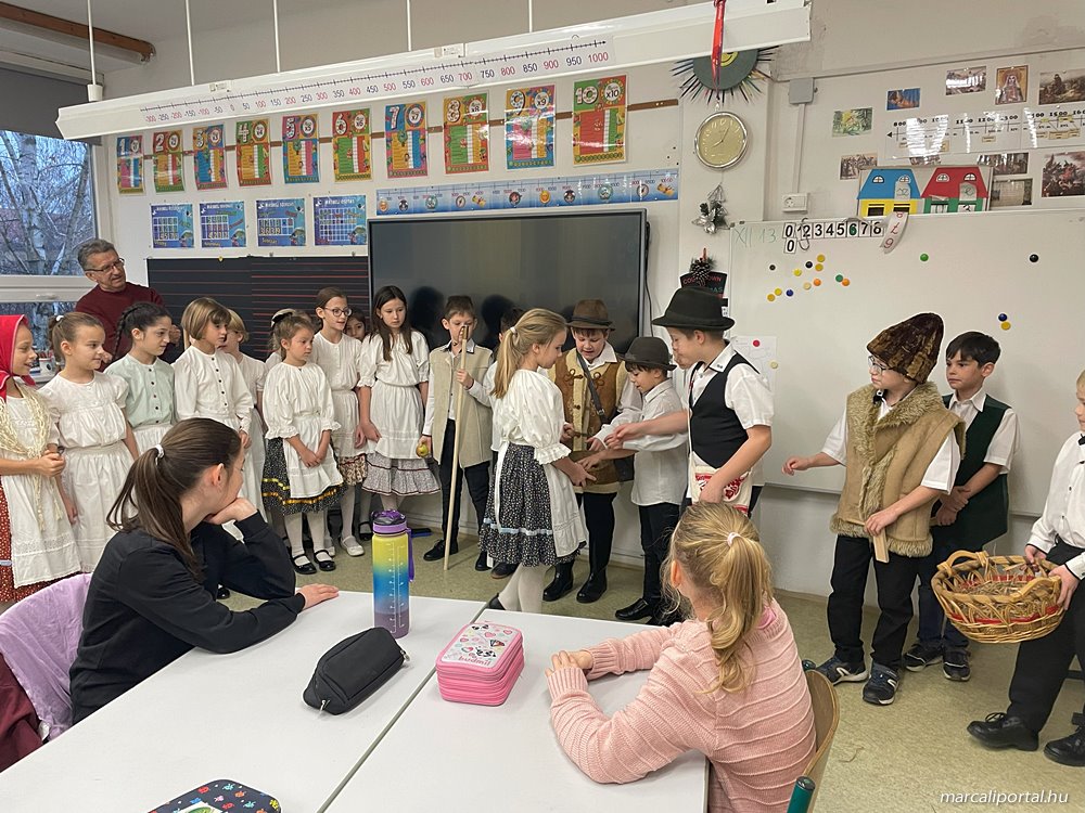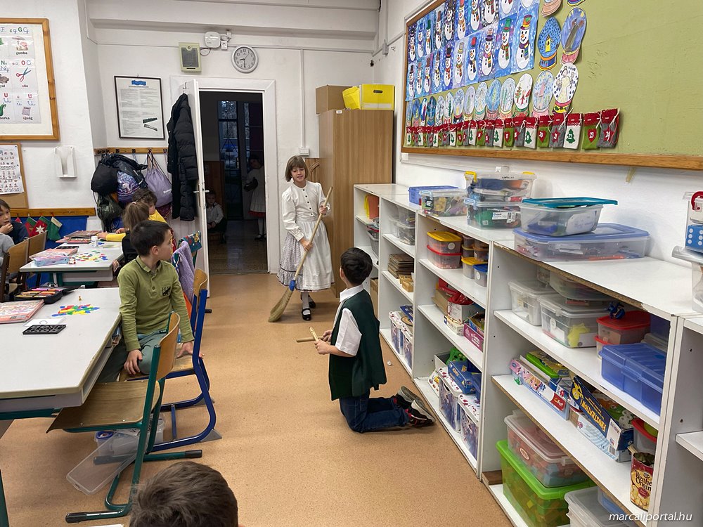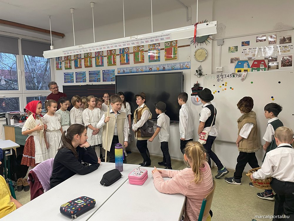 A gyerekek teremről-teremre jártak, hogy szerencsekívánó, termésvarázsló jókívánságaikkal, egészséget-, gazdagságot hozó rigmusaikkal megörvendeztessék társaikat, tanáraikat és az iskola dolgozóit.