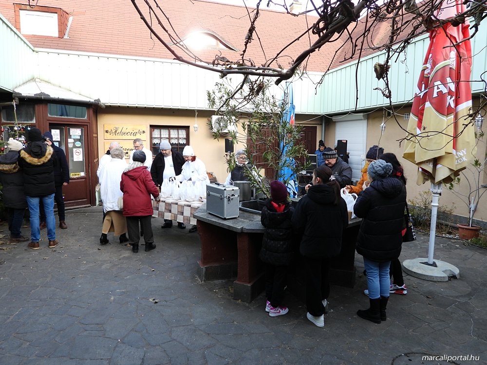 Marcali az Otthonunk Egyesület és a Helvécia Étterem idén is megszervezte a hagyományos karácsonyi ételosztást. Halászlével és bejgli csomaggal várták az odalátogatókat. A Halászlé partyhoz a bejgliket, a Marcali Takács Sütöde Kft sütötte.