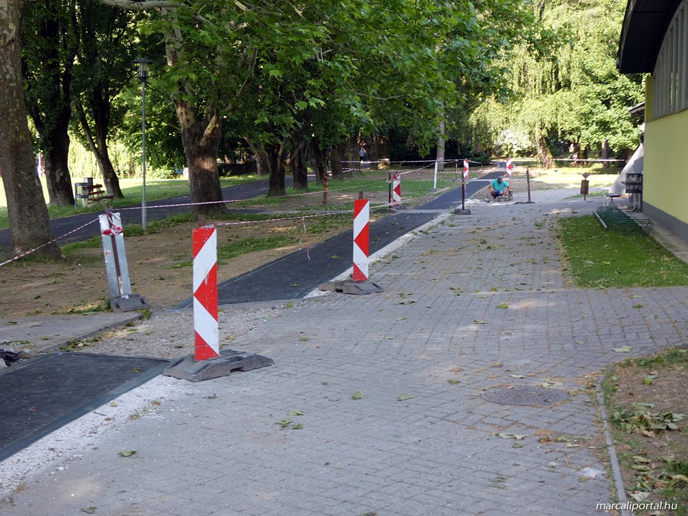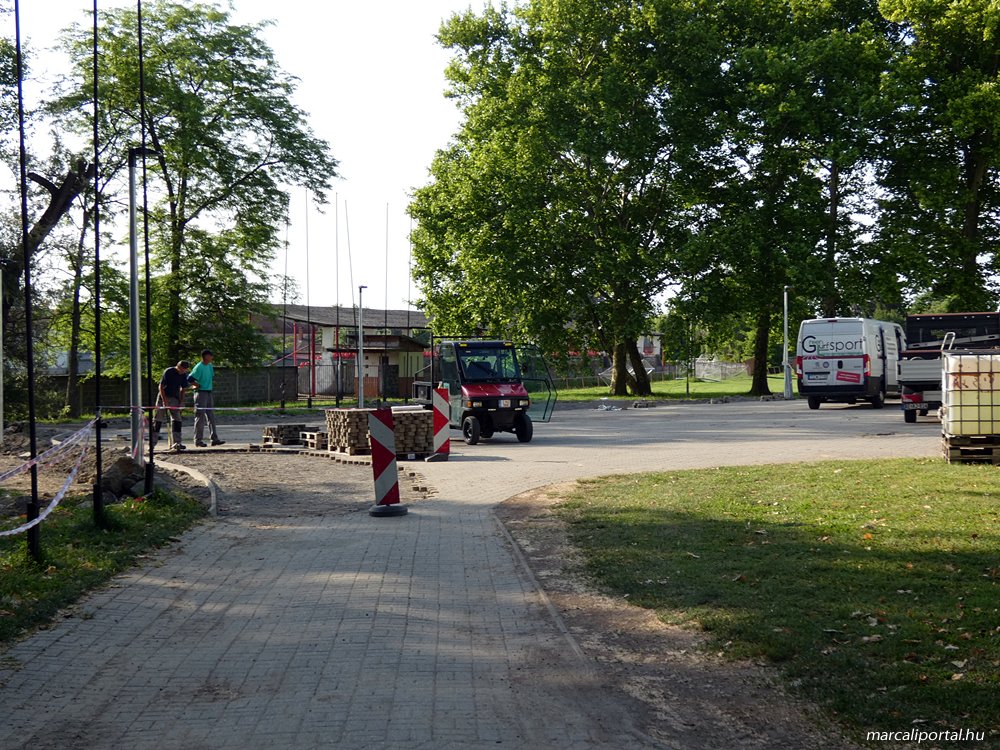 A Sportcsarnok és a Bernát Ház körül folytatódnak az előkészületek a térkövezéshez.