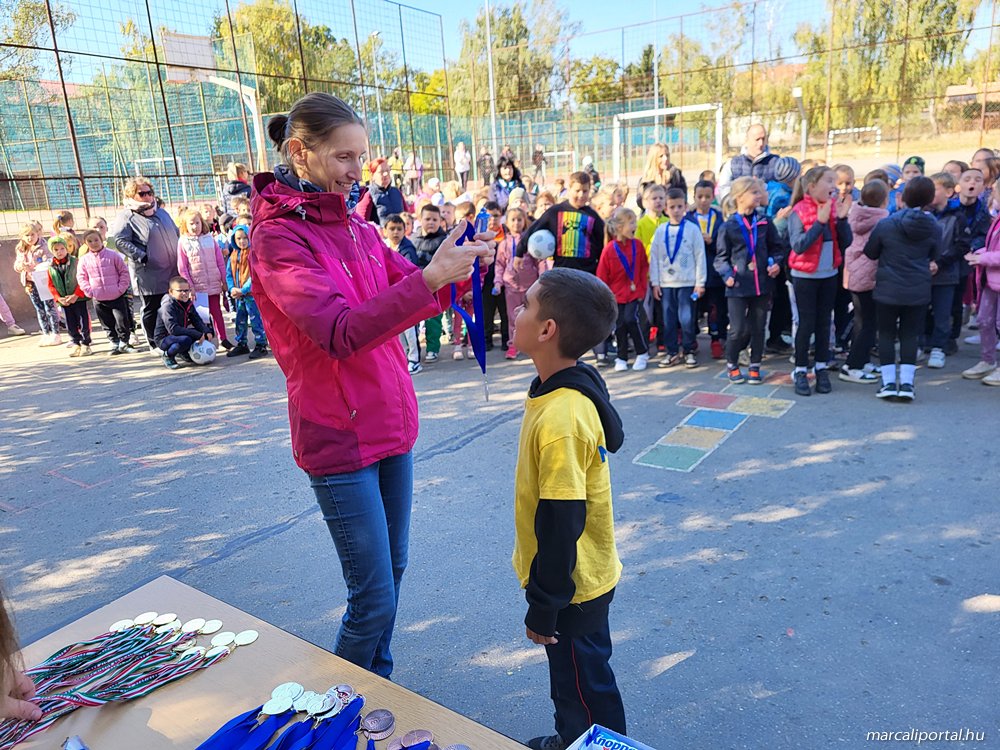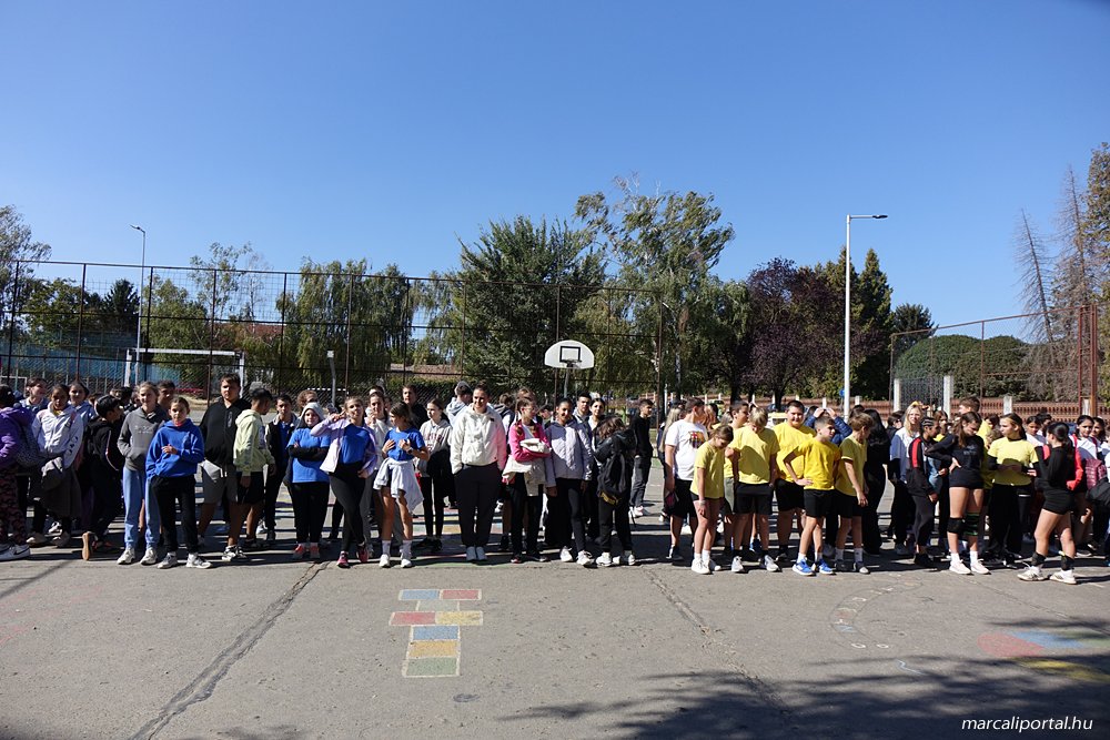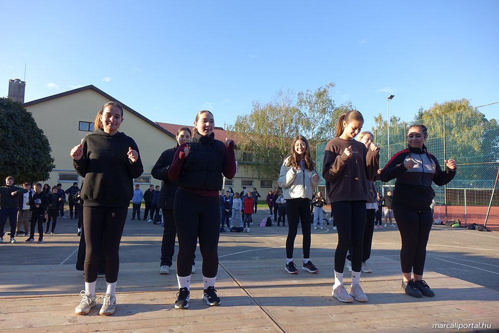 Patkó Imre igazgató úr megnyitója után a Marcali VSZSE küzdősport szakosztály noszlopys tanulói tartottak egy pörgős önvédelmi bemutatót, majd egy közös zenés bemelegítésen vett részt az iskola apraja-nagyja. A legkisebbeknek sorversennyel, míg a felsősöknek atlétikaversennyel folytatódott a program.