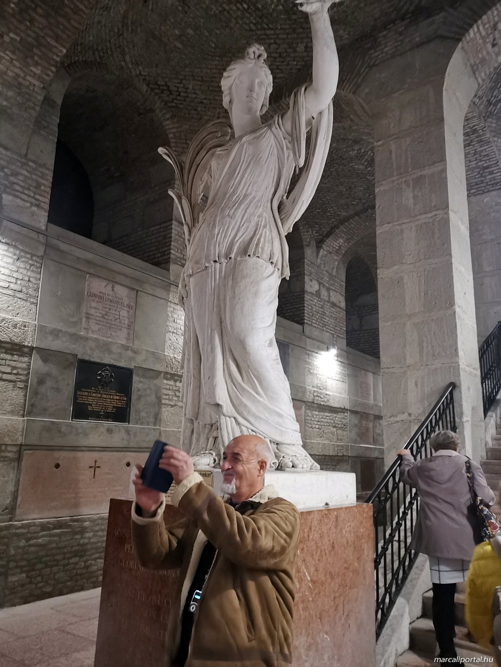 Kb. 50 lépcsőfok vezet a monumentális altemplomba, a főhelyen a mártírérsek, Mindszenty József sírboltja és a középkori kőtár is sok látnivalót tartogat.