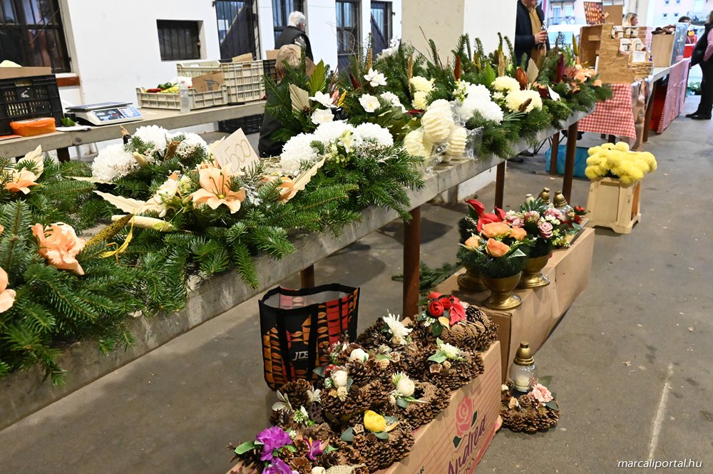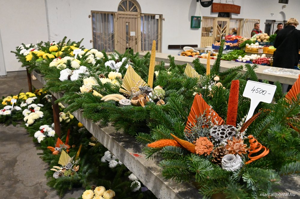 A rengeteg virág, koszorú és kellék mellett persze a hagyományos piac is nagy kínálattal nyitva van.