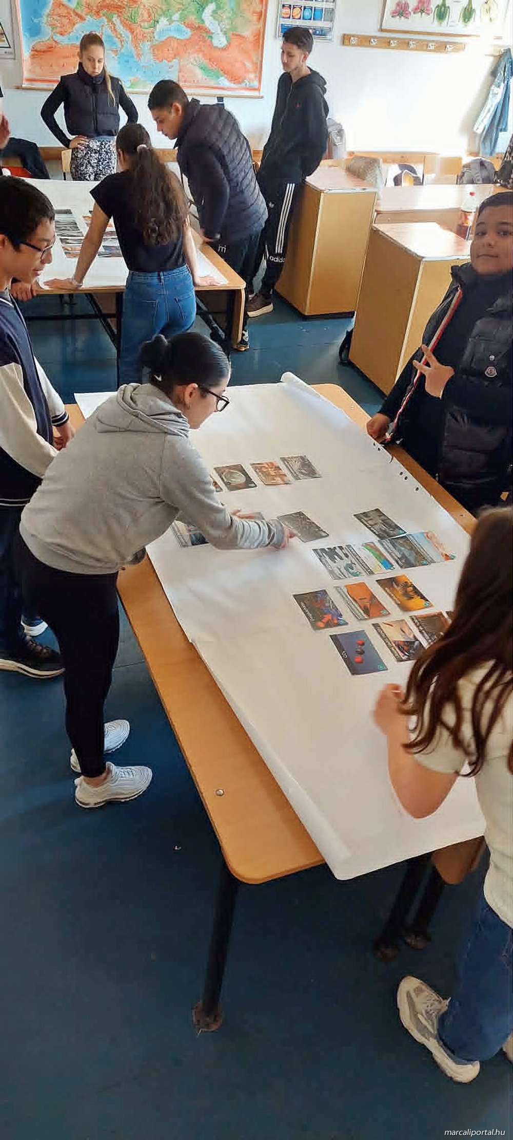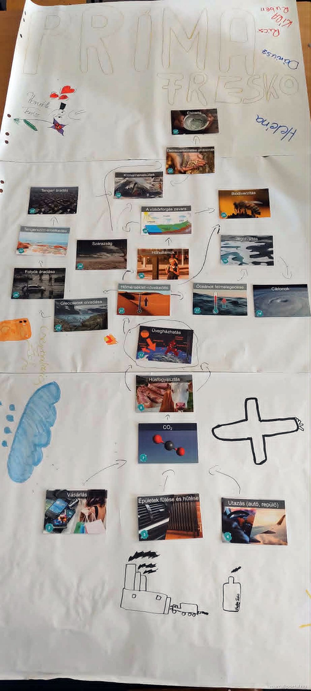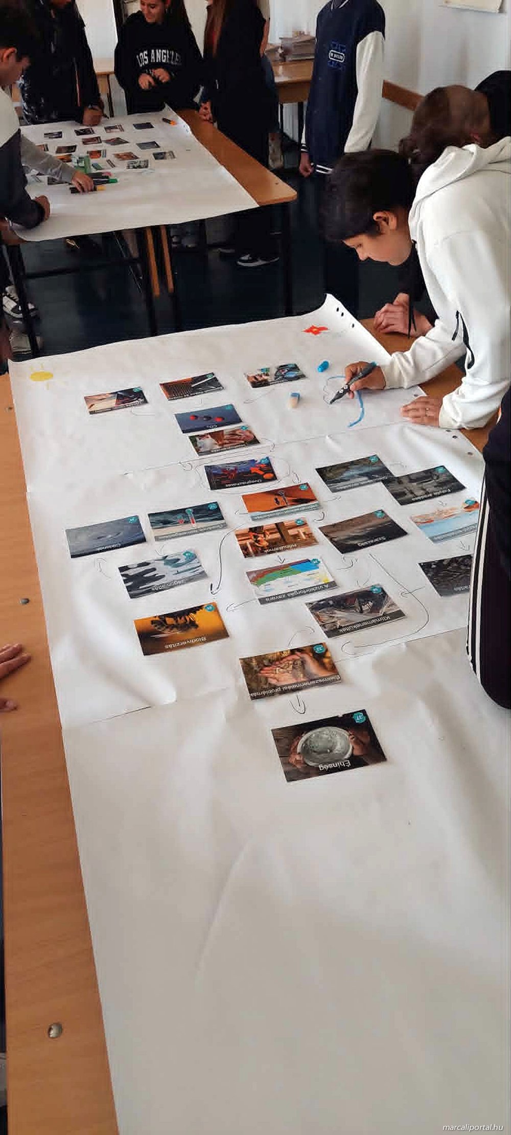 A második látogatáskor „Klímafreskó” címmel egy izgalmas interaktív játékos workshop foglalkozást tartott. Itt a tanulók egy strukturált, kártyajáték alapú folyamatban építették fel a klímaváltozás ok-okozati láncolatát, amely vizuálisan mutatja be a komplex klímajelenséget.