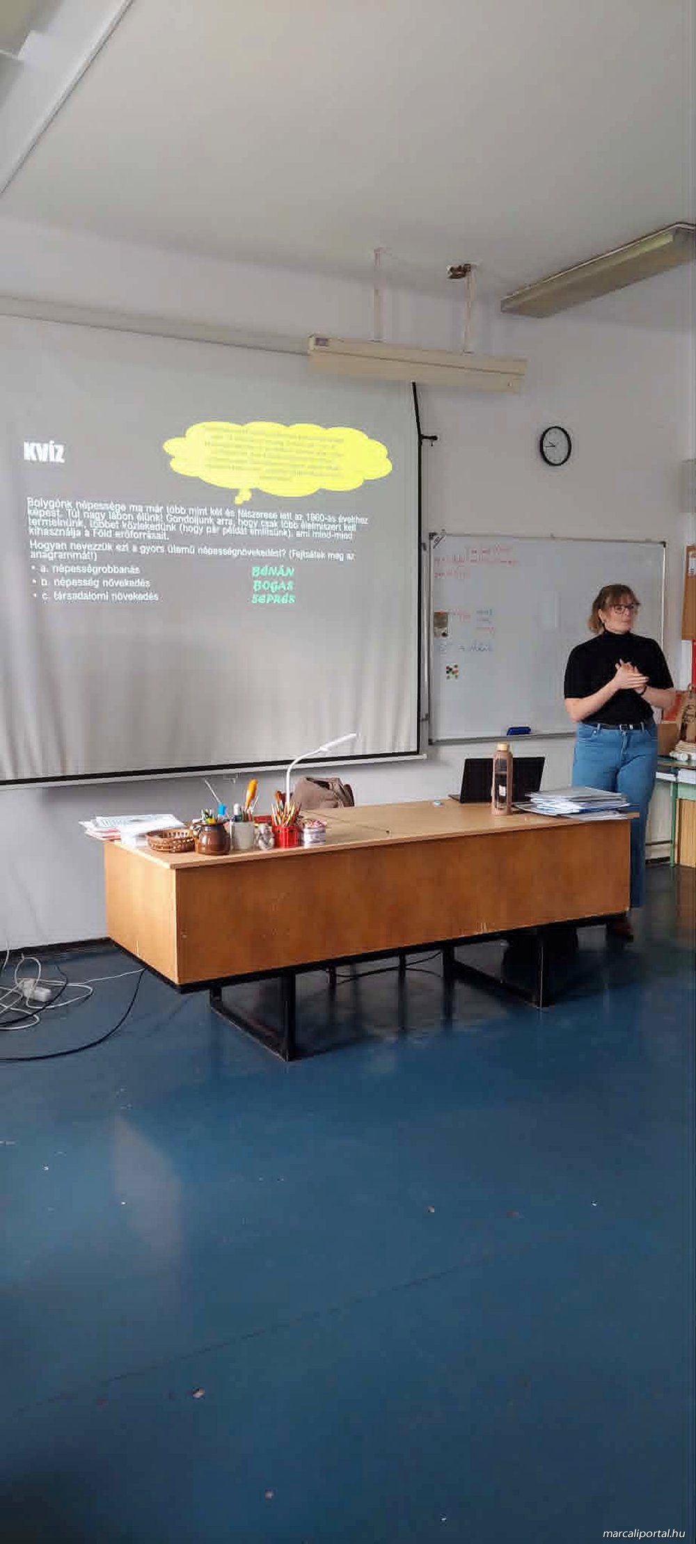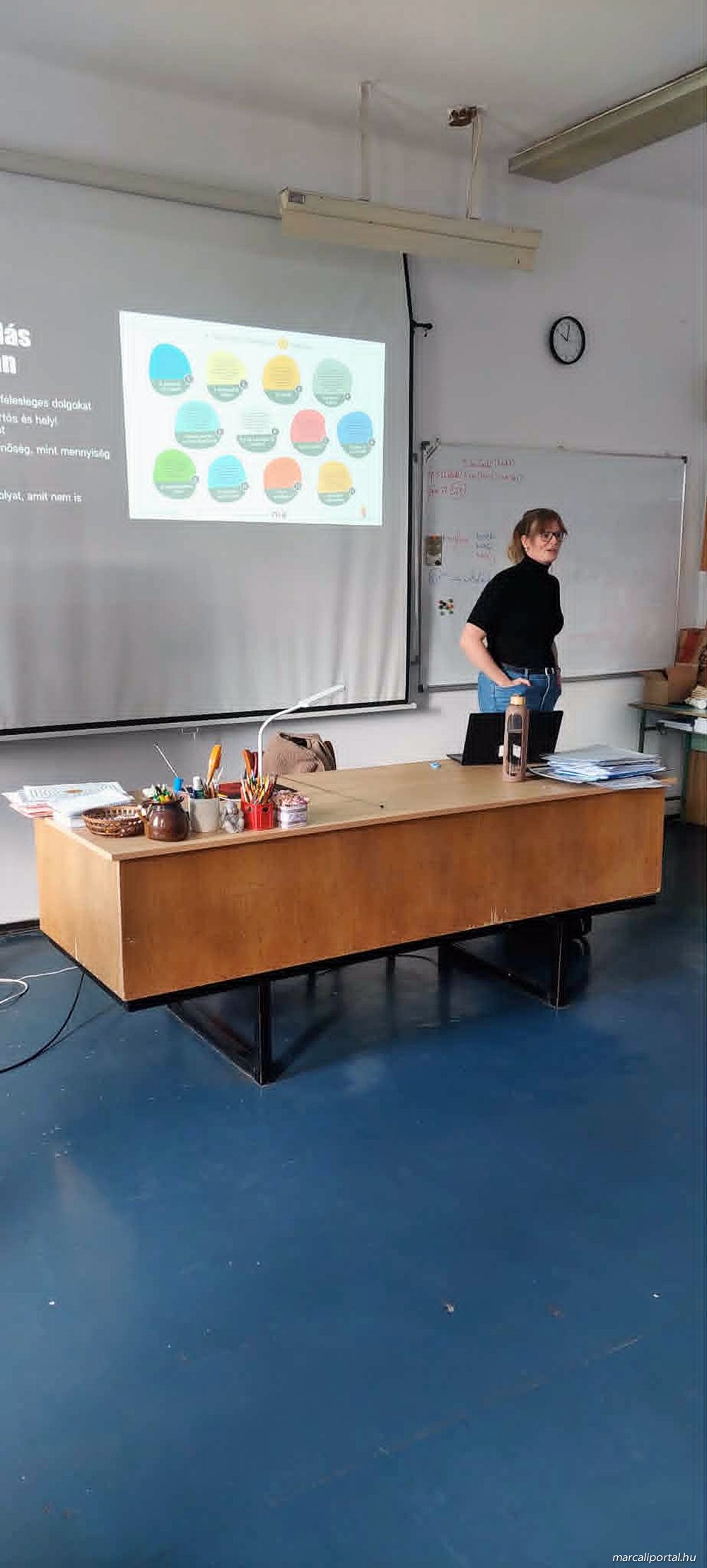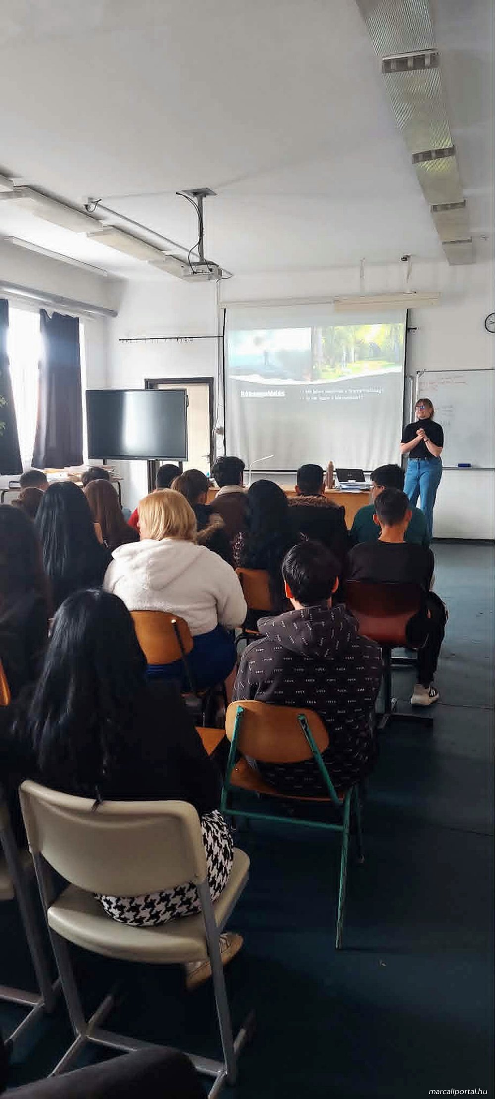 A héten Varga Éva önkéntes óralátogató két alkalommal is eljött az iskolába foglalkozást tartani. Az egyik témája a „Fenntarthatóság a mindennapokban” című interaktív előadás volt, ahol a fenntarthatóbb életmódról és a klímaszorongásról esett szó.